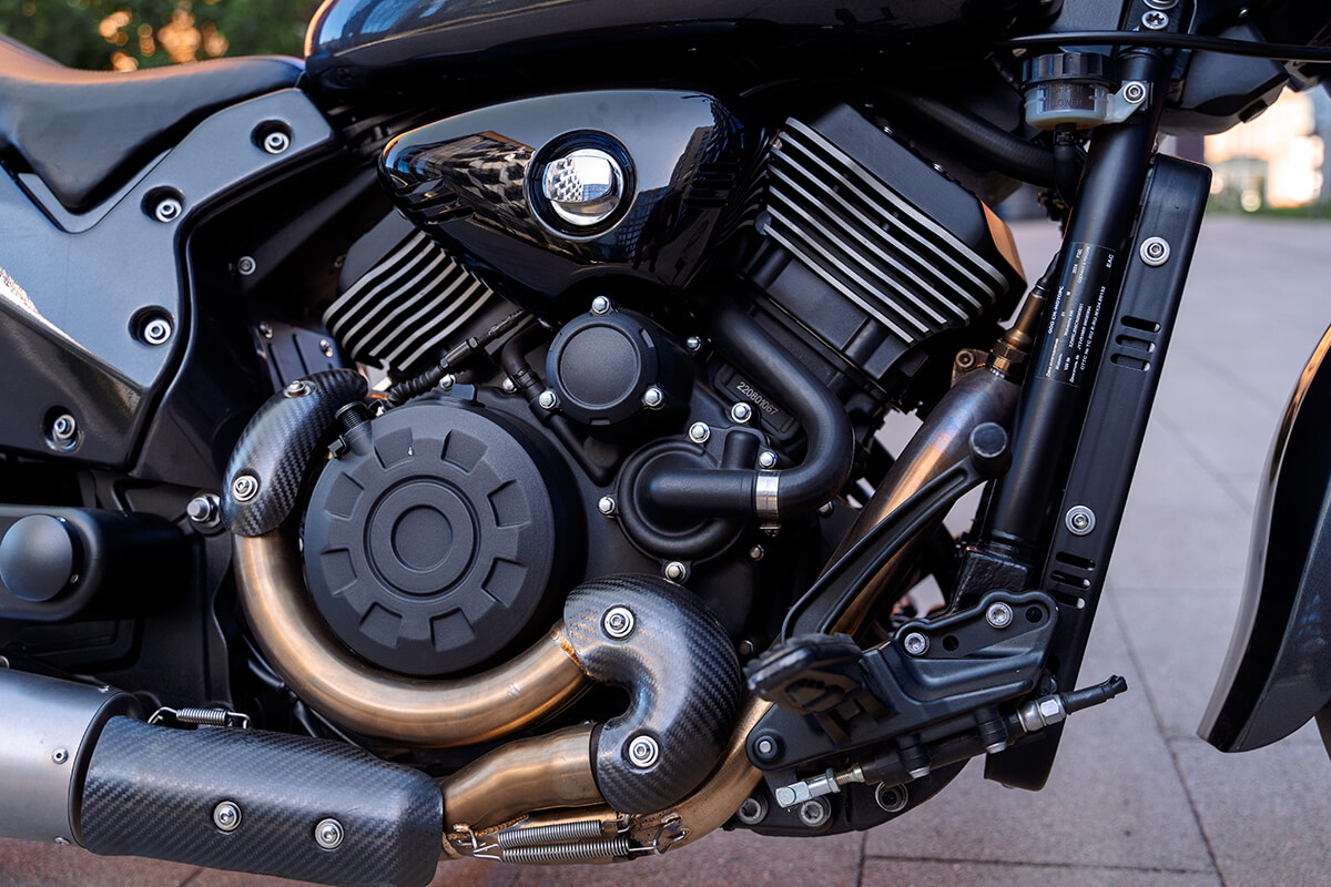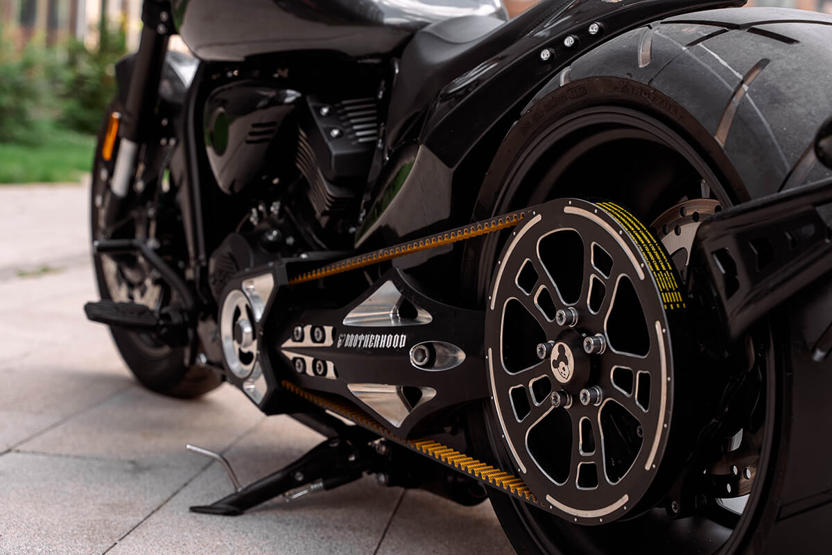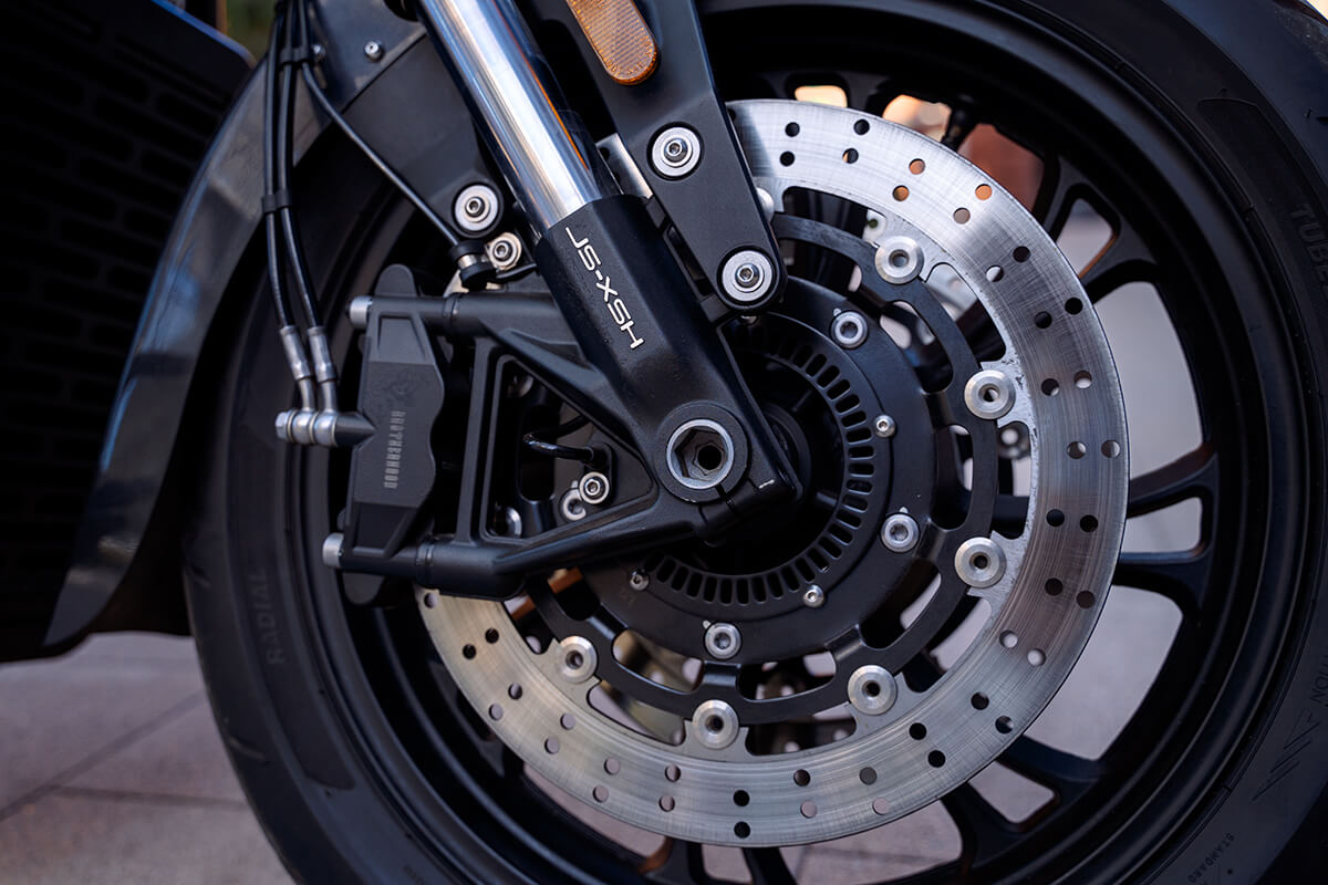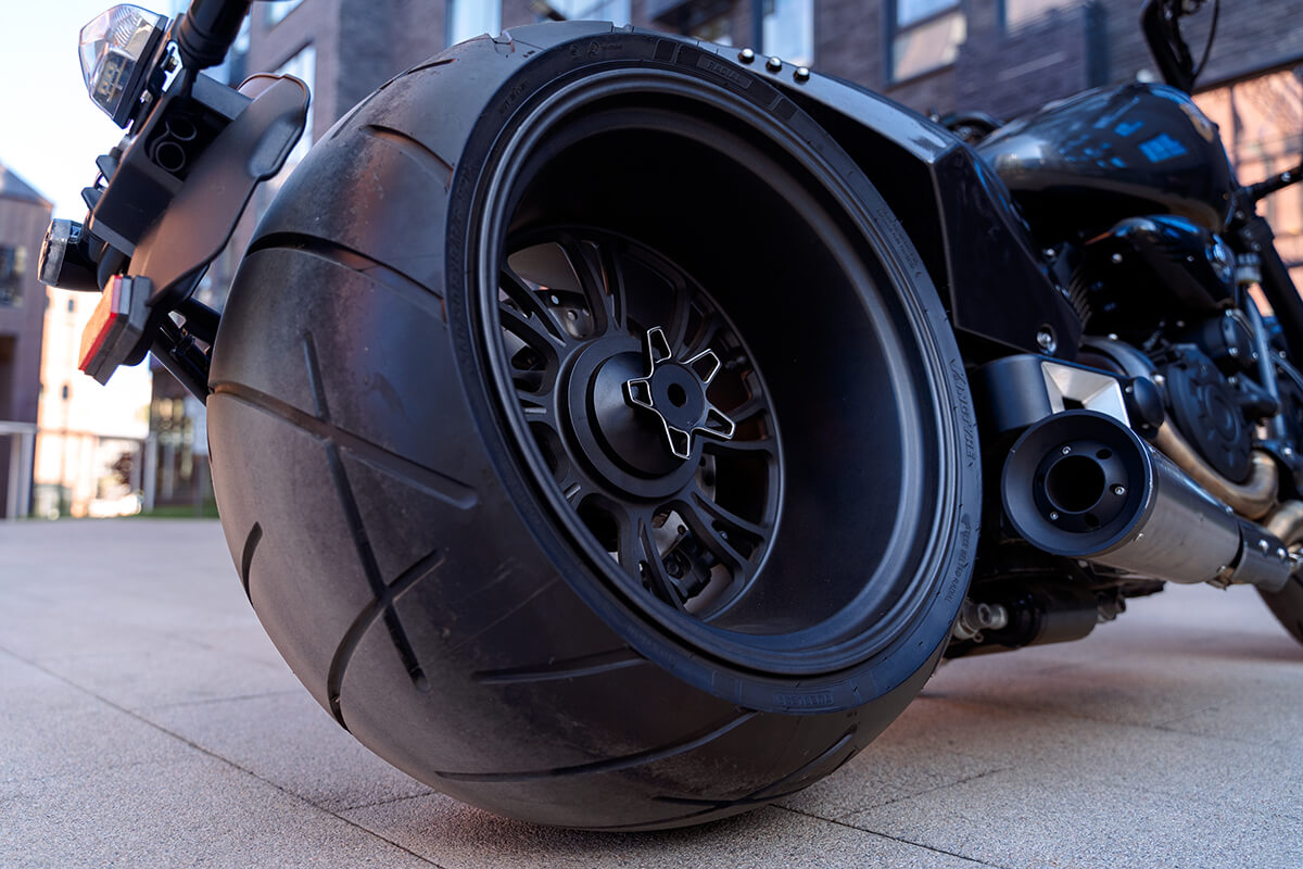 На мотоцикл установлены литые алюминиевые диски диаметром 17 дюймов спереди и 18 дюймов сзади. Ширина передней покрышки – 140 мм, а задней – рекордные 360 мм!