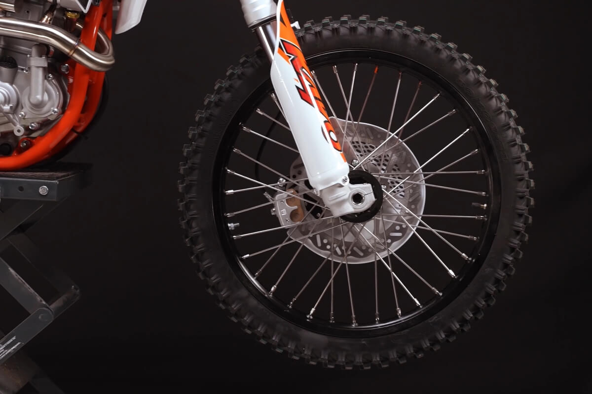 Классические спицованные колёса имеют диаметр 21 дюйм спереди и 18 дюймов сзади. Внедорожные покрышки с развитым протектором обеспечивают устойчивость на разных типах покрытий.