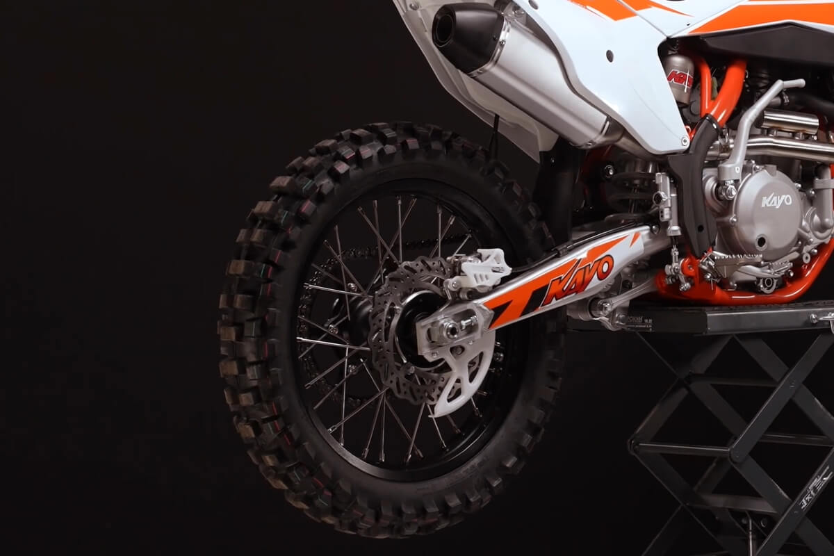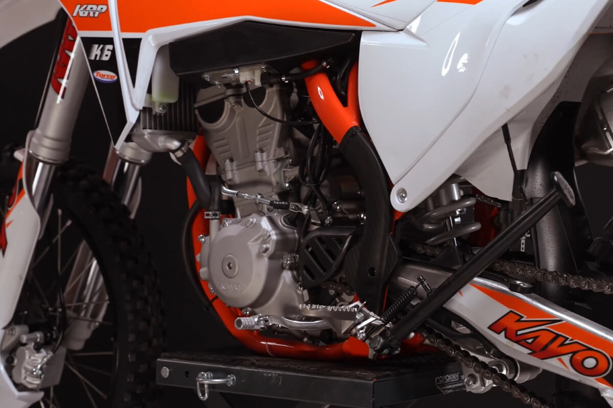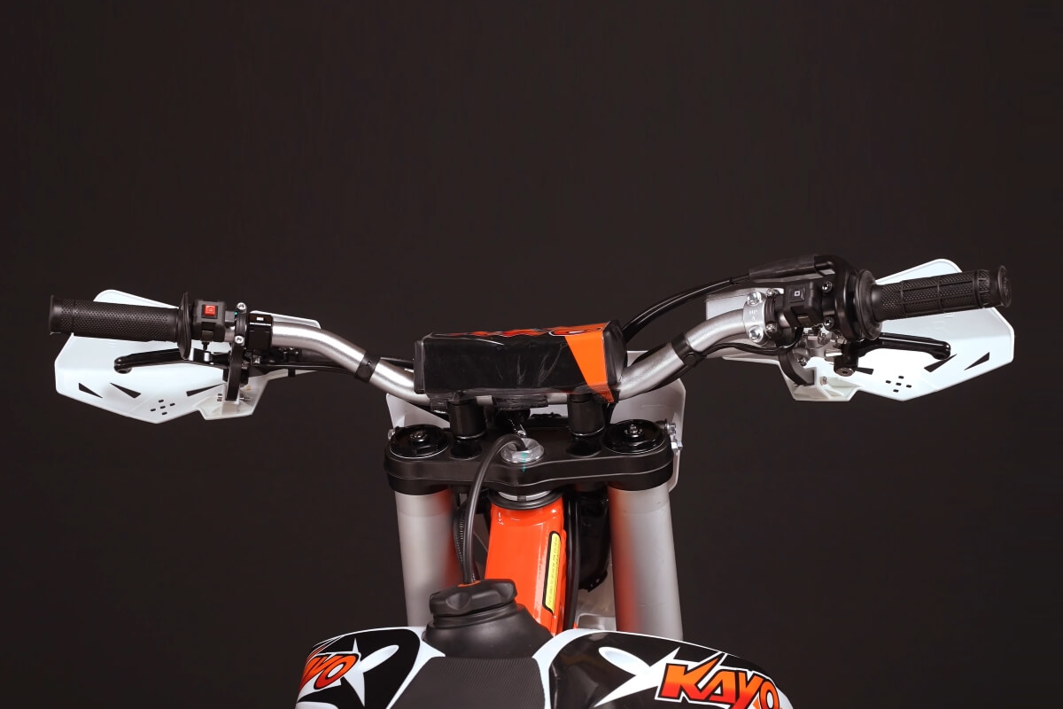 На обновлённой модификации мотоцикла установлены высокопроизводительные амортизаторы KAYO Racing Performance. Подвеска располагает полным диапазоном настроек, позволяющих адаптироваться под разные эксплуатационные задачи. Длина переднего амортизатора 950 мм, длина заднего амортизатора 480 мм.