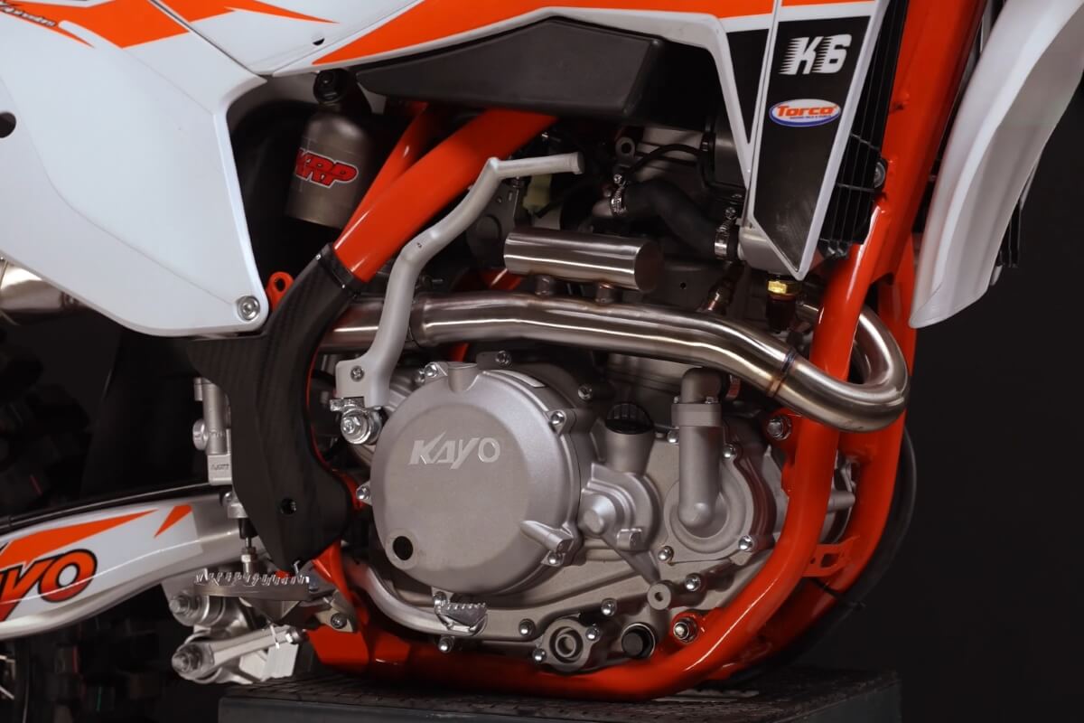В основу модернизированной тормозной системы легла конструкция от NISSIN и собственные доработки KAYO. Спереди используется 2-поршневой гидравлический суппорт, тормозной диск диаметром 270 мм и рычаг тормоза CNC 360 Pro Caken. Сзади установлен однопоршневой гидравлический суппорт и тормозной диск 240 мм.