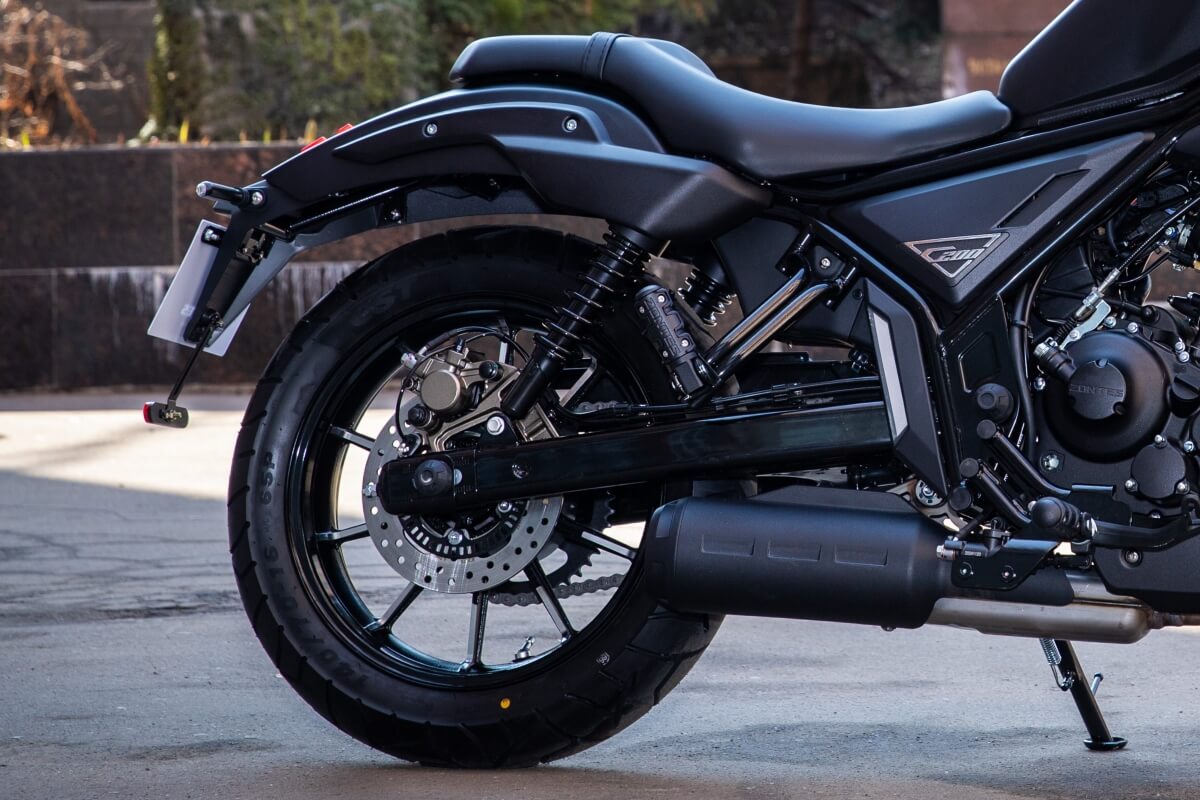 198 ТипКруизер Мощность, л.с.21.89 ДвигательОдноцилиндровый, 4-тактный ОхлаждениеЖидкостное Система подачи топливаИнжектор BOSCH Емкость бака, л.16 Передняя подвескаТелескопическая вилка Задняя подвескаДва газонаполненных амортизатора Передний тормозДисковый гидравлический с ABS Задний тормозДисковый гидравлический с ABS Колеса16/16 Длина*Ширина*Высота, мм2100x845x1120 База, мм1 485 Высота по седлу, мм700 Вес, кг154 Скорость, км/ч120 -