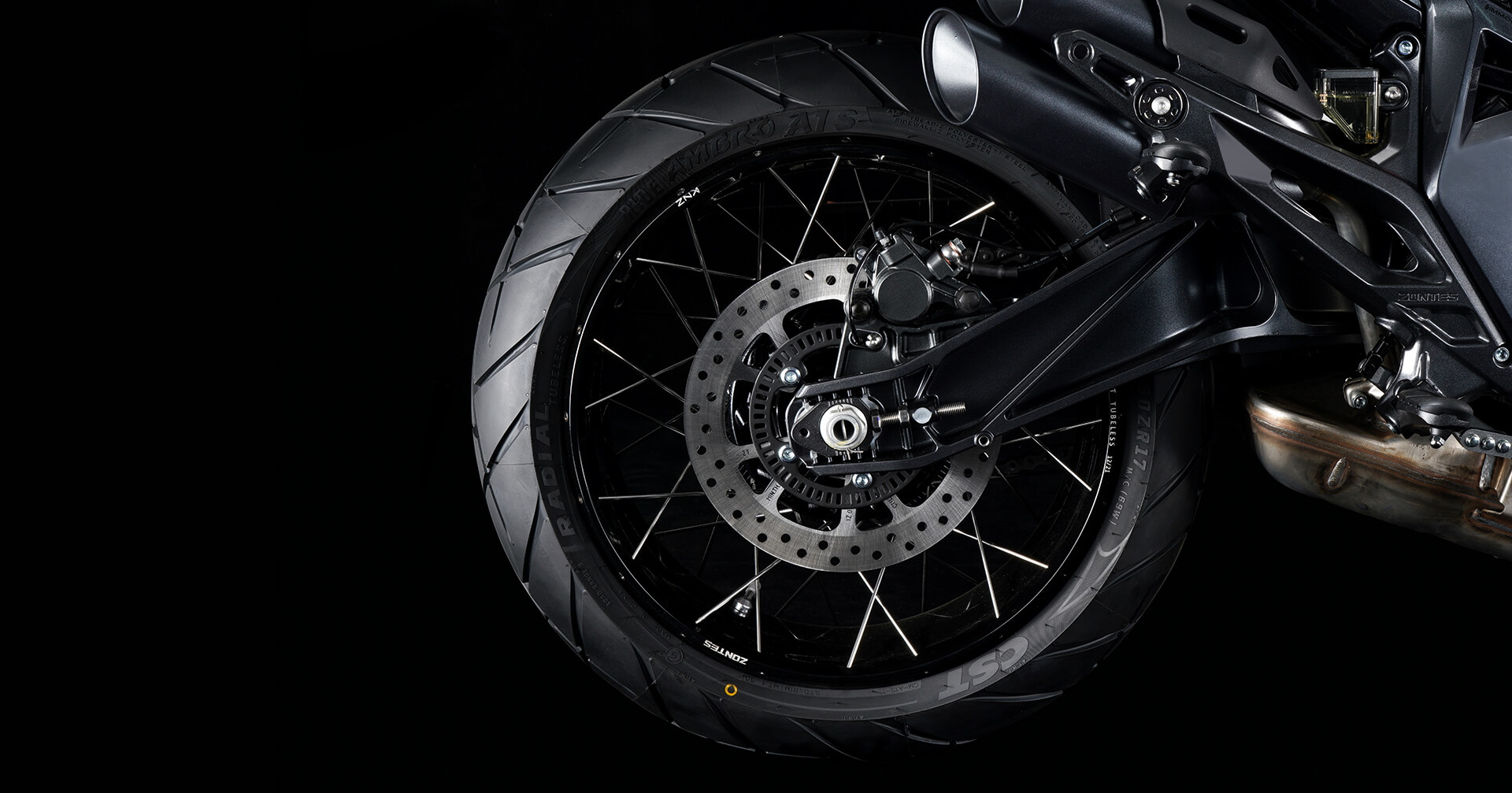 Колёса представлены литыми алюминиевыми дисками диаметром 19 дюймов спереди и 17 дюймов сзади. На мотоцикл установлены датчики давления в шинах, показатели от которых выводятся на приборную панель. Для подвески спереди используется телескопическая вилка, сзади – моноамортизатор. Гидравлические дисковые тормоза произведены испанской компанией J.JUAN, входящей в холдинг BREMBO.
