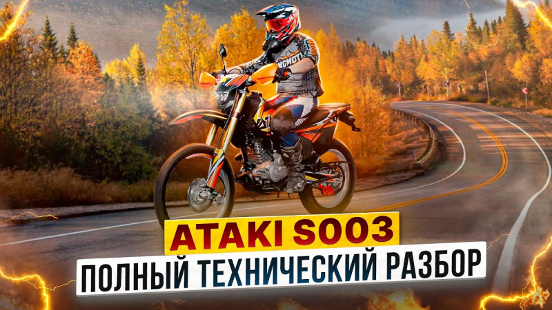 Мотоцикл класса дуалспорт Ataki S003 с двигателем Zongshen ZS175FMM PR300, объемом 271 куб.см и мощностью 24 л.с., с карбюратором PD30 подходит для проездов по асфальтовым дорогам и пересеченной местности. Его мощности и гибкости подвесок хватает, чтобы с комфортом проезжать лежачие полицейские в городе или даже совершать небольшие прыжки на бездорожье.