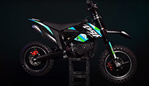 Центробежное сцепление переключается автоматически, упрощая тем самым путь освоения мототехники юному райдеру. Дисковые тросиковые тормоза, передние и задние с рычагами, выведены на руль по типу велосипеда: такое расположение позволяет ребенку быстро переключить свой опыт с одного средства мобильности на другое. Передним амортизатором выступает классическая нерегулируемая вилка, задний амортизатор регулируется только по преднатягу. Корпус состоит из классического черного пластика, который используется на большинстве моделей этого бренда.