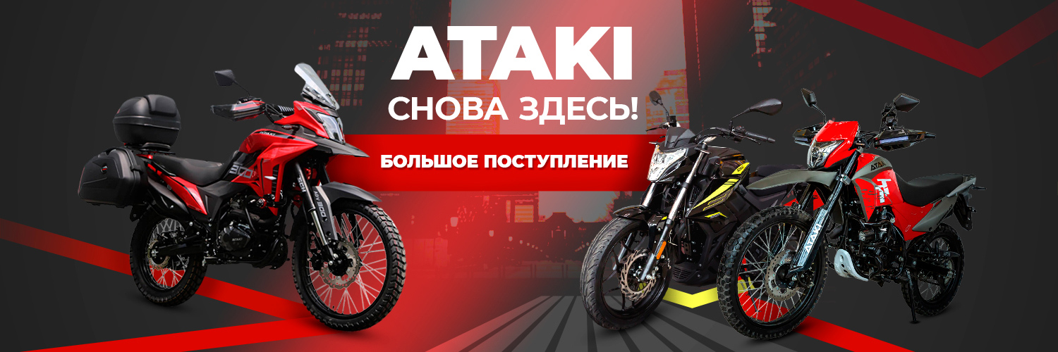 Несём хорошую новость для путешественников, эндуристов и покорителей городских пространств! Поступило большое количество мотоциклов ATAKI – как дорожных, так и внедорожных моделей.