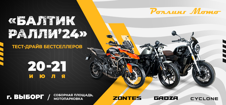 Федеральная сеть мотосалонов РОЛЛИНГ МОТО с 20 по 21 июля проведёт на мероприятии тест-драйвы самых интересных моделей мотоциклов от компаний CYCLONE, GROZA и ZONTES, чтобы у гостей была возможность разом протестировать бестселлеры нескольких известных брендов.