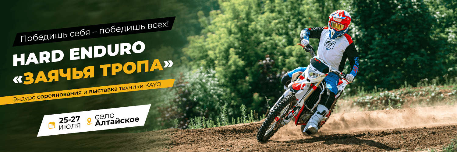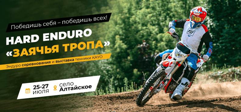 Это масштабные официальные соревнования, поделённые на 3 этапа, которые пройдут с 25 по 27 июля в селе Алтайское. Сама «Заячья тропа» – пожалуй, самая сложная эндуро трасса за Уралом, где гонки проходят под лозунгом «Победишь себя – победишь всех».