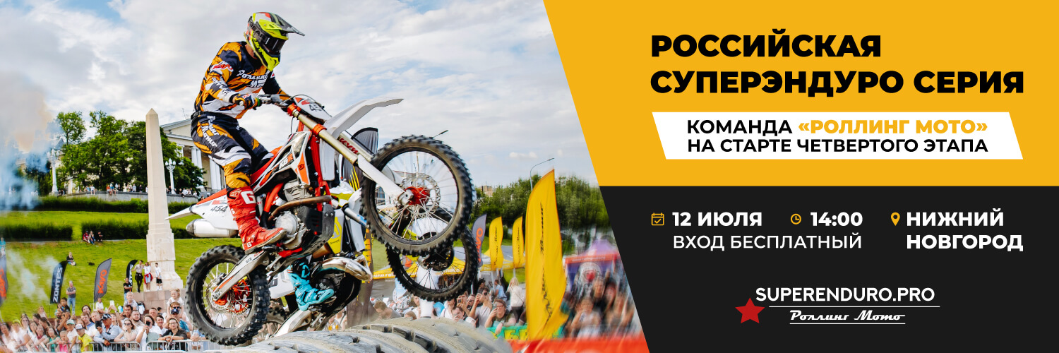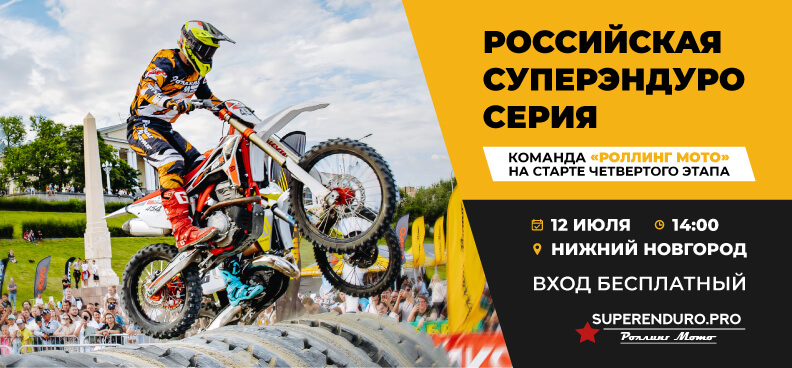 12 июля в Нижнем Новгороде пройдёт 4 этап Российской Суперэндуро Серии. Программа включает заезды с участием сильнейших эндуристов страны, выставку техники и активности для зрителей.