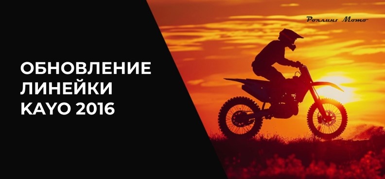 Обновленная линейка мототехники Kayo 2016 года представлена широким разнообразием моделей мотоциклов для мотокросса и эндуро, питбайков как спортивного, так и утилитарного назначения, а также квадроциклами разного класса.
