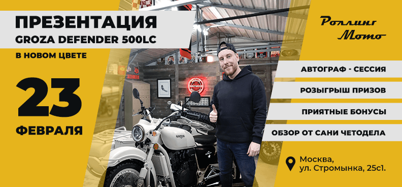 Отмечаем День защитника Отечества с Роллинг Мото: вечеринка и презентация нового цвета GROZA Defender 500LC