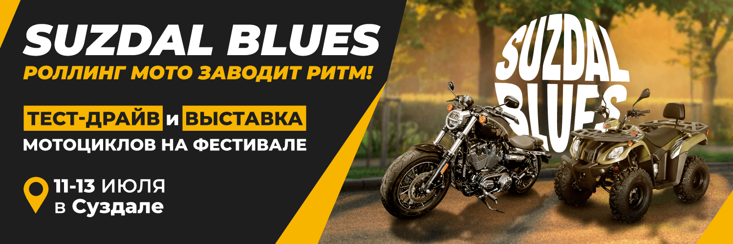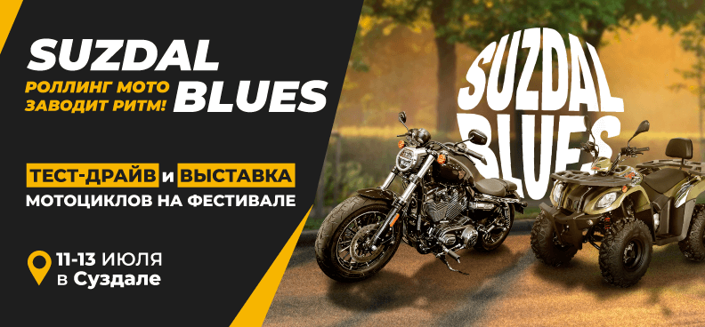 В этом году фестиваль SUZDAL BLUES приурочен к мотопразднику – 140 лет мотоциклам! Окунитесь в атмосферу хорошего блюза с 11 по 13 июля в Суздале, где вас ждёт не только выступление лучших блюз-рокеров страны, но и возможность протестировать мотоциклы Роллинг Мото.