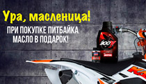 Народные гуляния на Масленицу набирают обороты – разгуляй добрался и до Rollingmoto! Блинов не обещаем, но зато имеются отличные подарки. С 15 февраля и только до 19 февраля каждому покупателю питбайка в сети мотосалонов и на сайте интернет-магазина – литр моторного масла для мототехники Motul и присадка Liqui Moly «Формула скорости»!