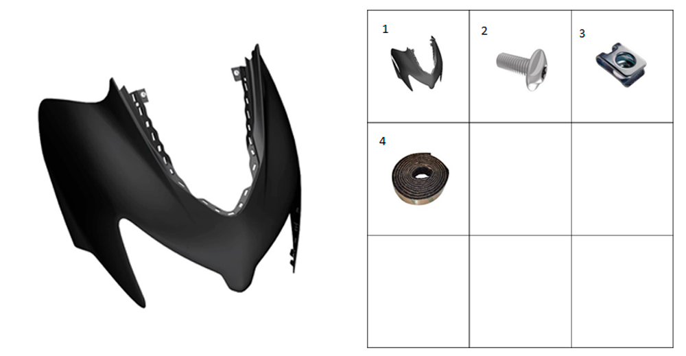 Взрыв-схема элемента Передняя панель (черная с серой наклейкой) на Максискутер ZONTES ZT368-K