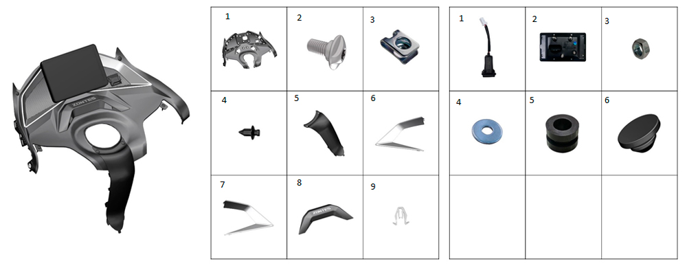 Взрыв-схема элемента Облицовка приборной панели серый пластик на Максискутер ZONTES ZT368-K
