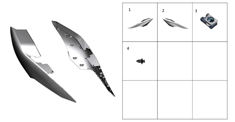 Взрыв-схема элемента Накладки задние хвостовой части (серебристые) на Максискутер ZONTES ZT368-K