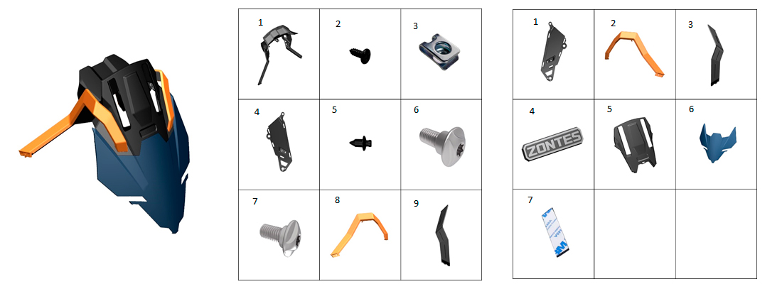 Взрыв-схема элемента Облицовка панели передней внешняя (синяя) на Мотоцикл ZONTES ZT703-F TOUR 21/18