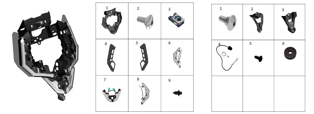 Взрыв-схема элемента Кронштейн панели передней внутренний в сборе (коричневые вставки) на Мотоцикл ZONTES ZT703-F TOUR 21/18