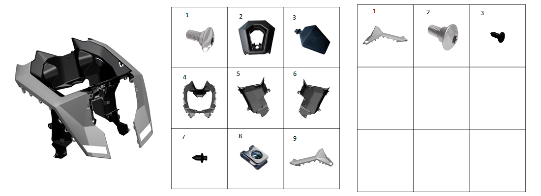 Взрыв-схема элемента Облицовка панели передней внутренняя (серая) на Мотоцикл ZONTES ZT703-F TOUR 21/18