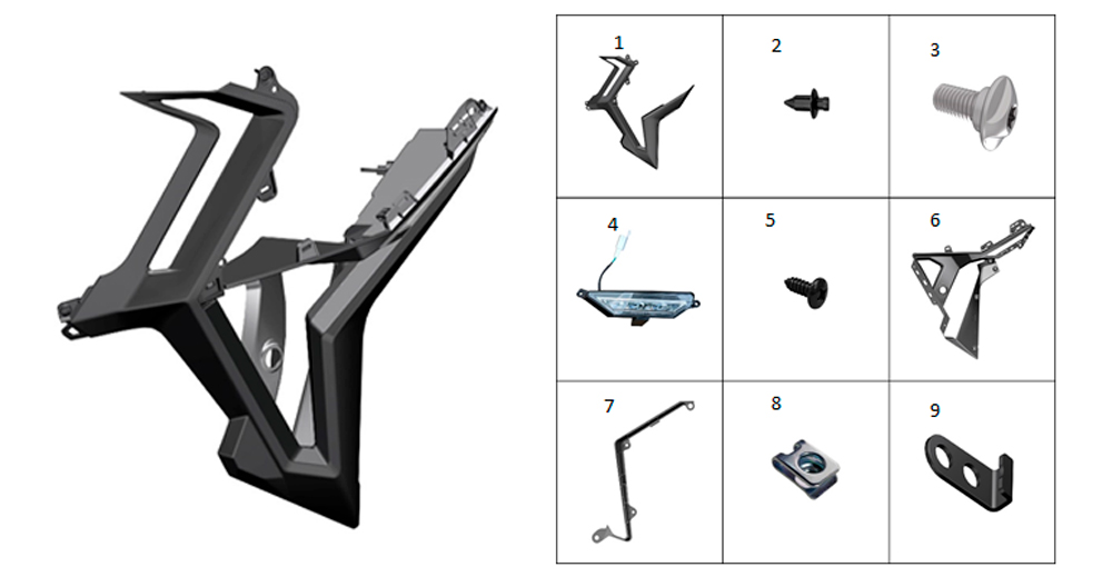 Взрыв-схема элемента Облицовка двигателя боковая правая на Мотоцикл ZONTES ZT703-F TOUR 21/18