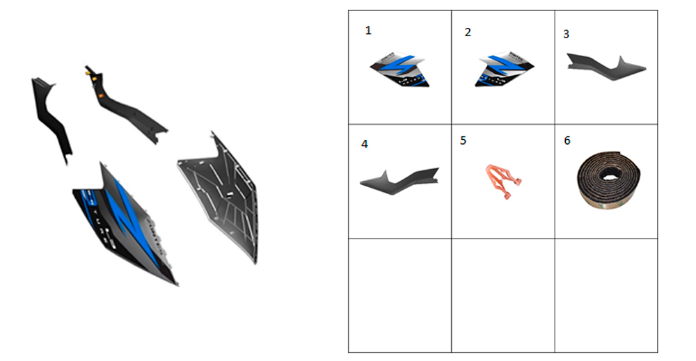 Взрыв-схема элемента Облицовки бака топливного (серые) на Мотоцикл ZONTES ZT703-F TOUR 21/18