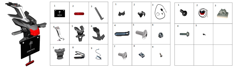 Взрыв-схема элемента Хвостовая часть и крепление номерного знака на Мотоцикл ZONTES ZT703-F TOUR 21/18