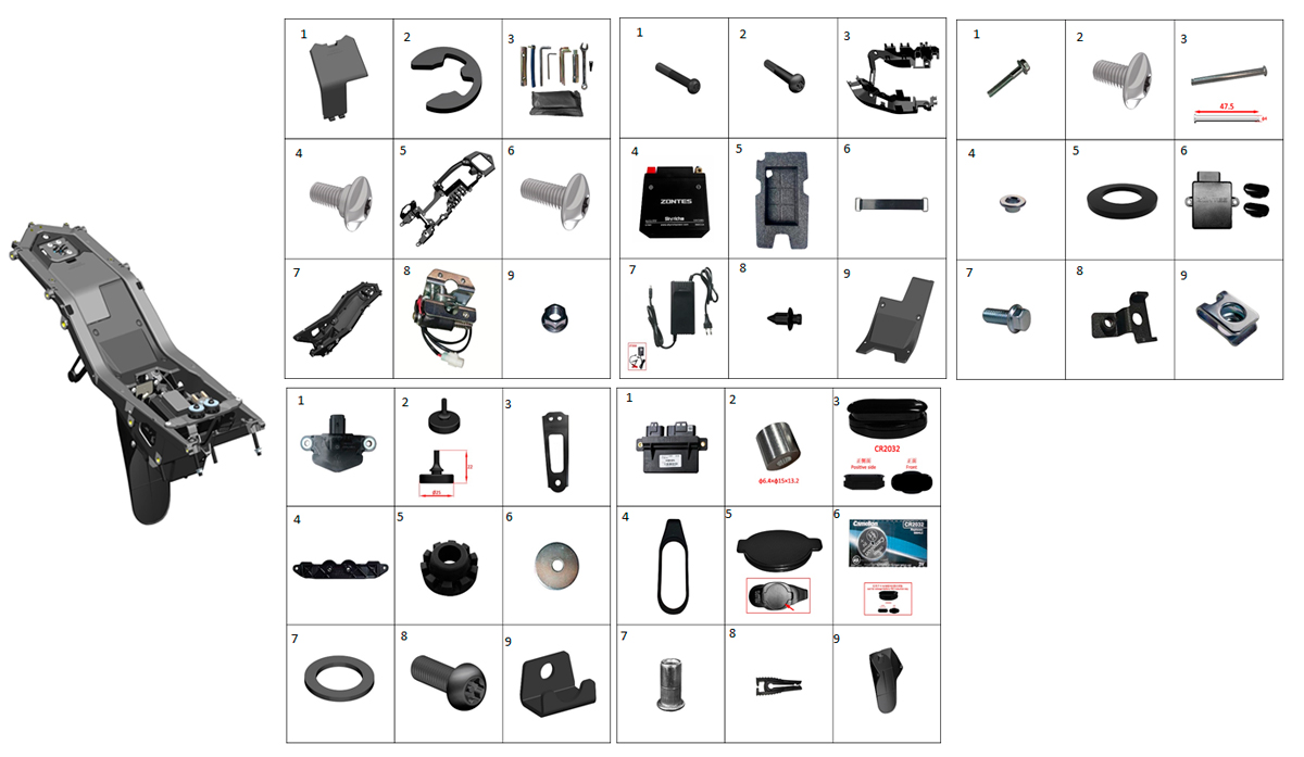 Взрыв-схема элемента Пластик хвостовой части и АКБ на Мотоцикл ZONTES ZT703-F TOUR 21/18