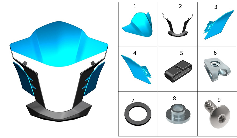 Взрыв-схема элемента Обтекатель передний на Мотоцикл ZONTES ZT350-R1