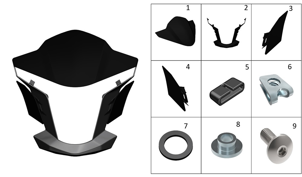 Взрыв-схема элемента Обтекатель передний 2 на Мотоцикл ZONTES ZT350-R1