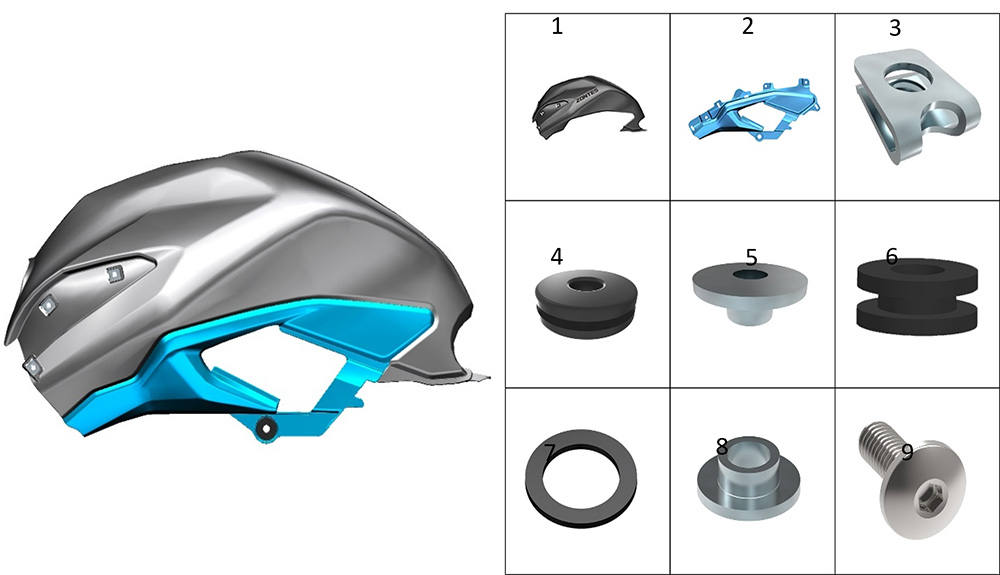 Взрыв-схема элемента Декоративная накладка бака топливного на Мотоцикл ZONTES ZT350-R1