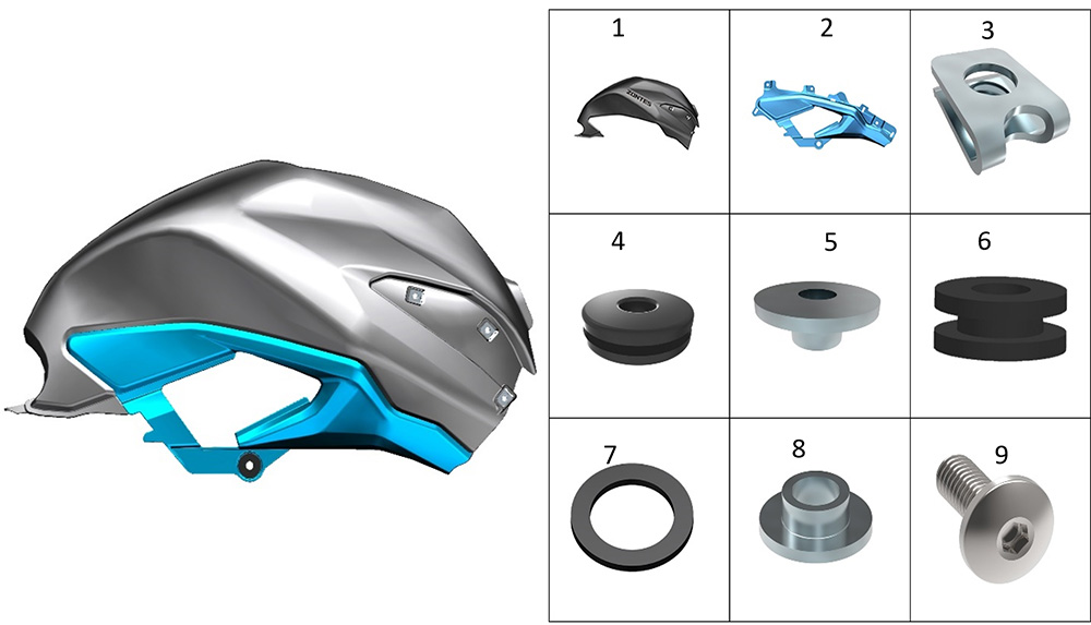 Взрыв-схема элемента Декоративная накладка бака топливного 4 на Мотоцикл ZONTES ZT350-R1