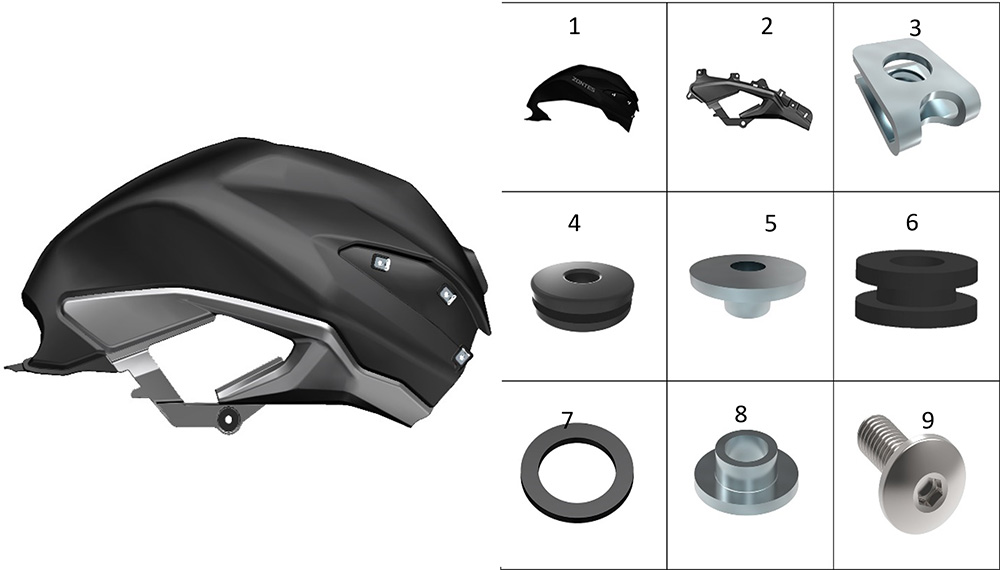 Взрыв-схема элемента Декоративная накладка бака топливного 5 на Мотоцикл ZONTES ZT350-R1