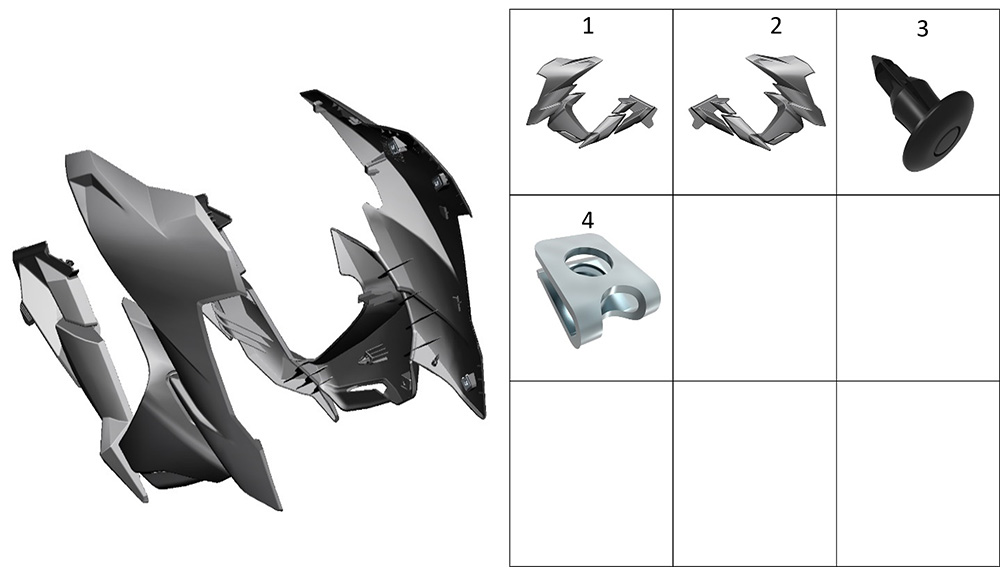 Взрыв-схема элемента Боковая накладка топливного бака на Мотоцикл ZONTES ZT350-R1