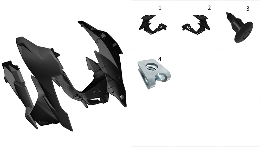 Взрыв-схема элемента Боковая накладка топливного бака 2 на Мотоцикл ZONTES ZT350-R1