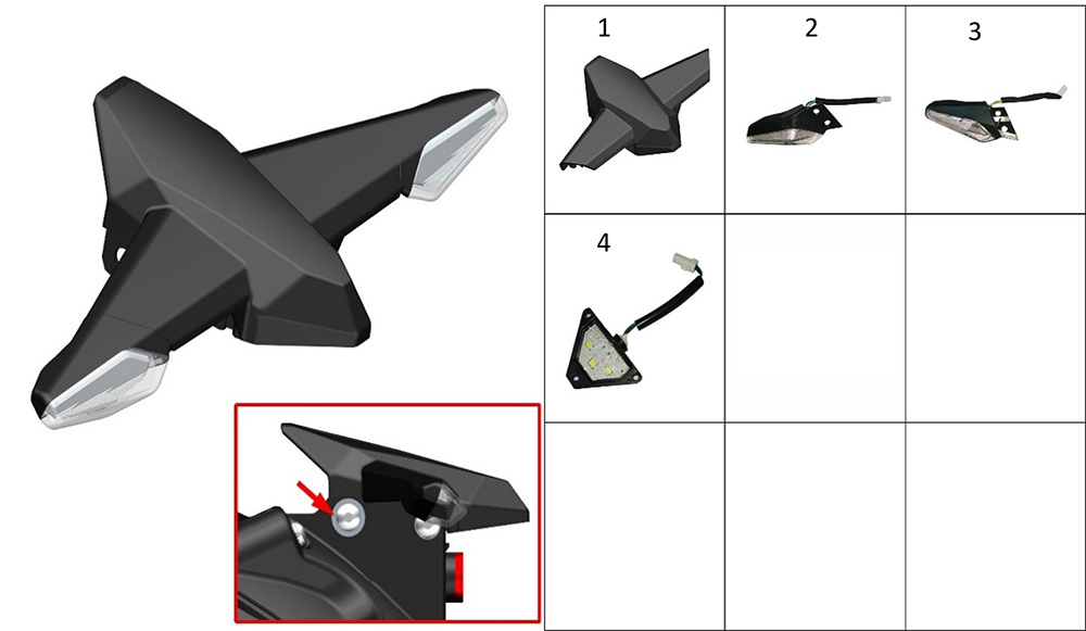 Взрыв-схема элемента Блок фонарей задних 2 на Мотоцикл ZONTES ZT350-R1