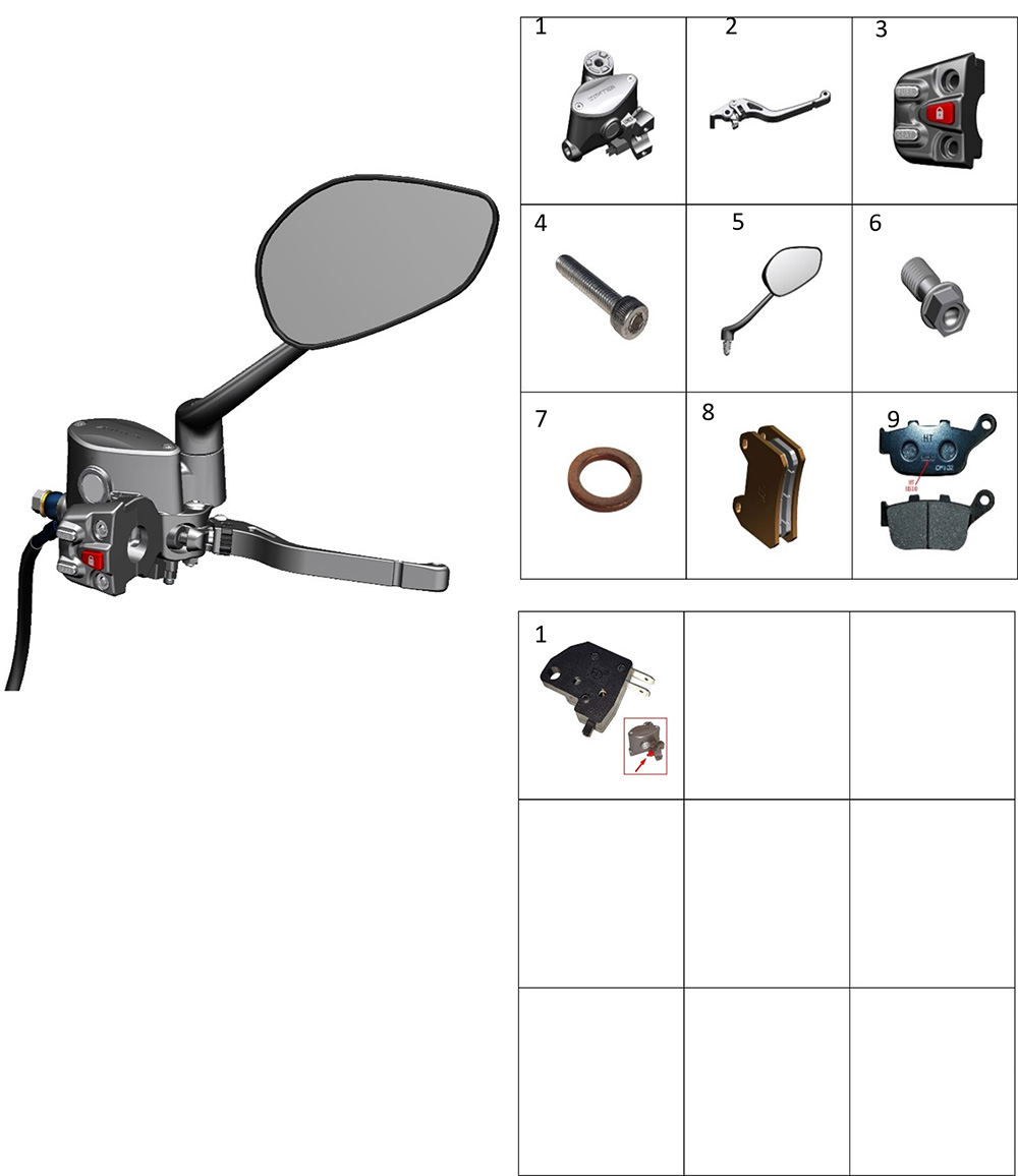 Взрыв-схема элемента Элементы правой ручки руля на Мотоцикл ZONTES ZT350-R1