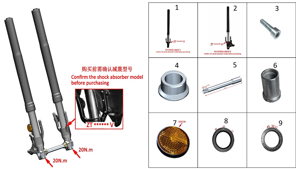 Взрыв-схема элемента Подвеска передняя на Мотоцикл ZONTES ZT350-R1