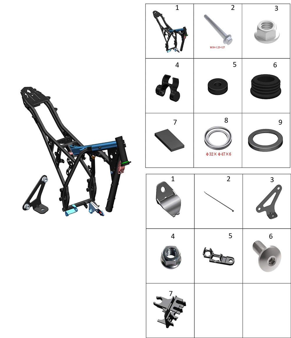 Взрыв-схема элемента Рама на Мотоцикл ZONTES ZT350-R1