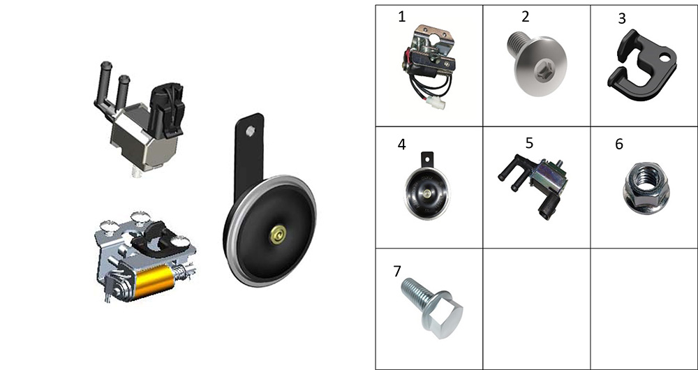 Взрыв-схема элемента Звуковой сигнал и замок сидения на Мотоцикл ZONTES ZT350-R1