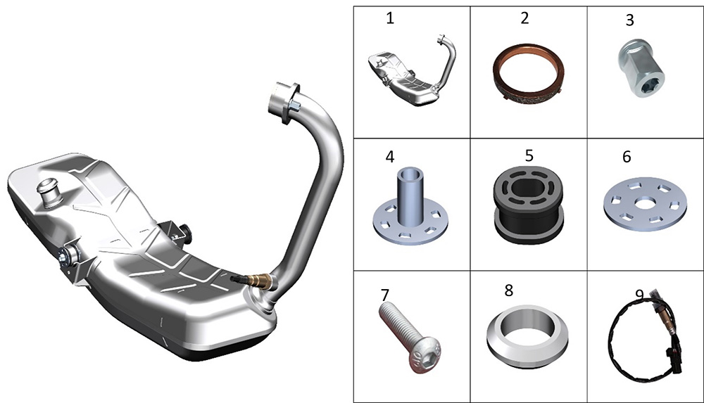 Взрыв-схема элемента Выхлопная система на Мотоцикл ZONTES ZT350-R1