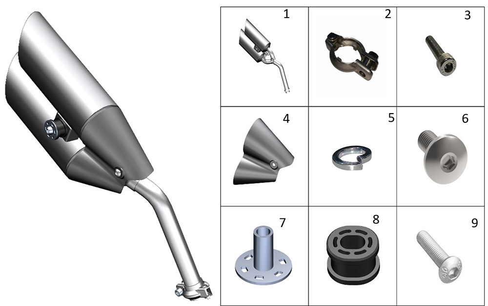 Взрыв-схема элемента Труба глушителя на Мотоцикл ZONTES ZT350-R1