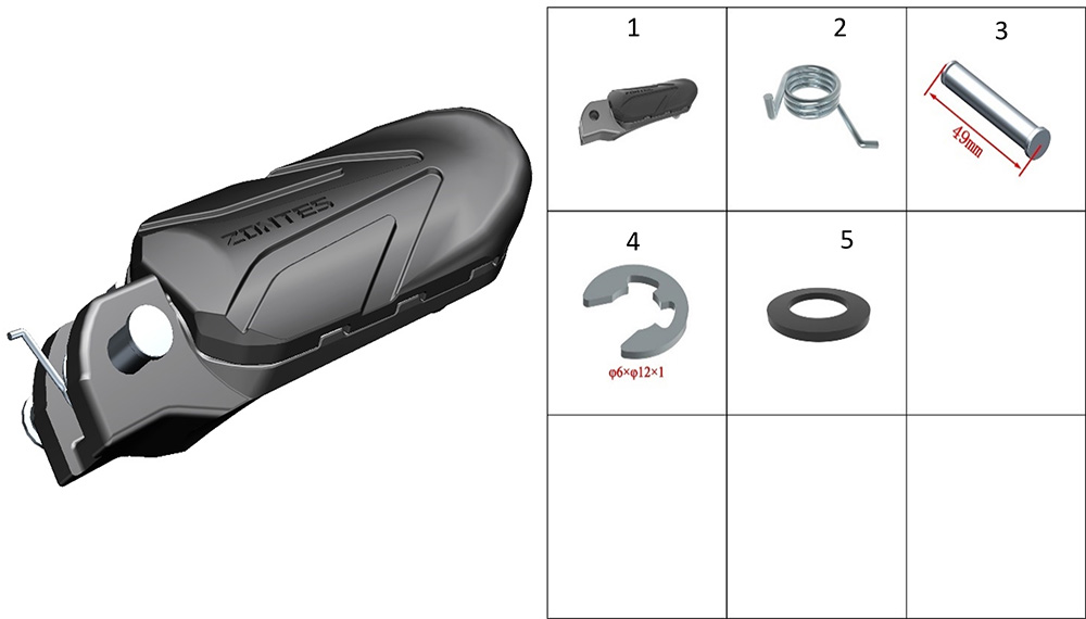 Взрыв-схема элемента Подножка левая на Мотоцикл ZONTES ZT350-R1