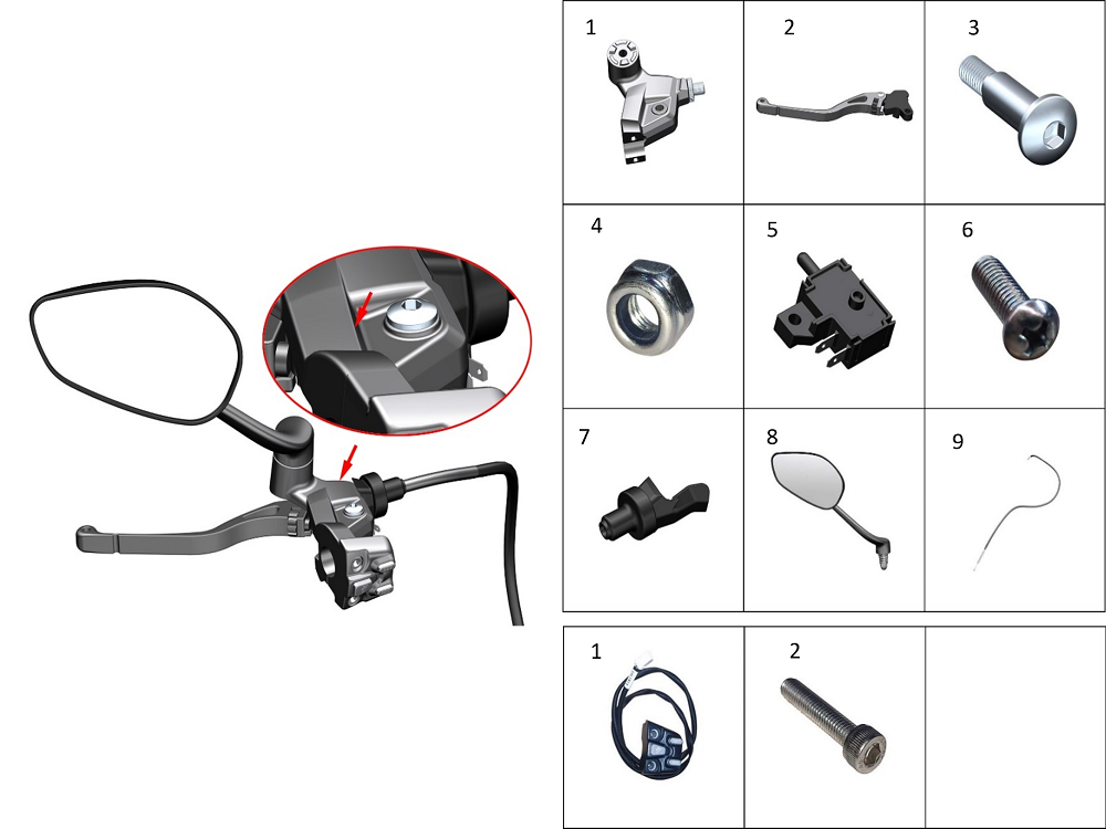 Взрыв-схема элемента Элементы левой ручки руля1 на Мотоцикл ZONTES ZT350-VX
