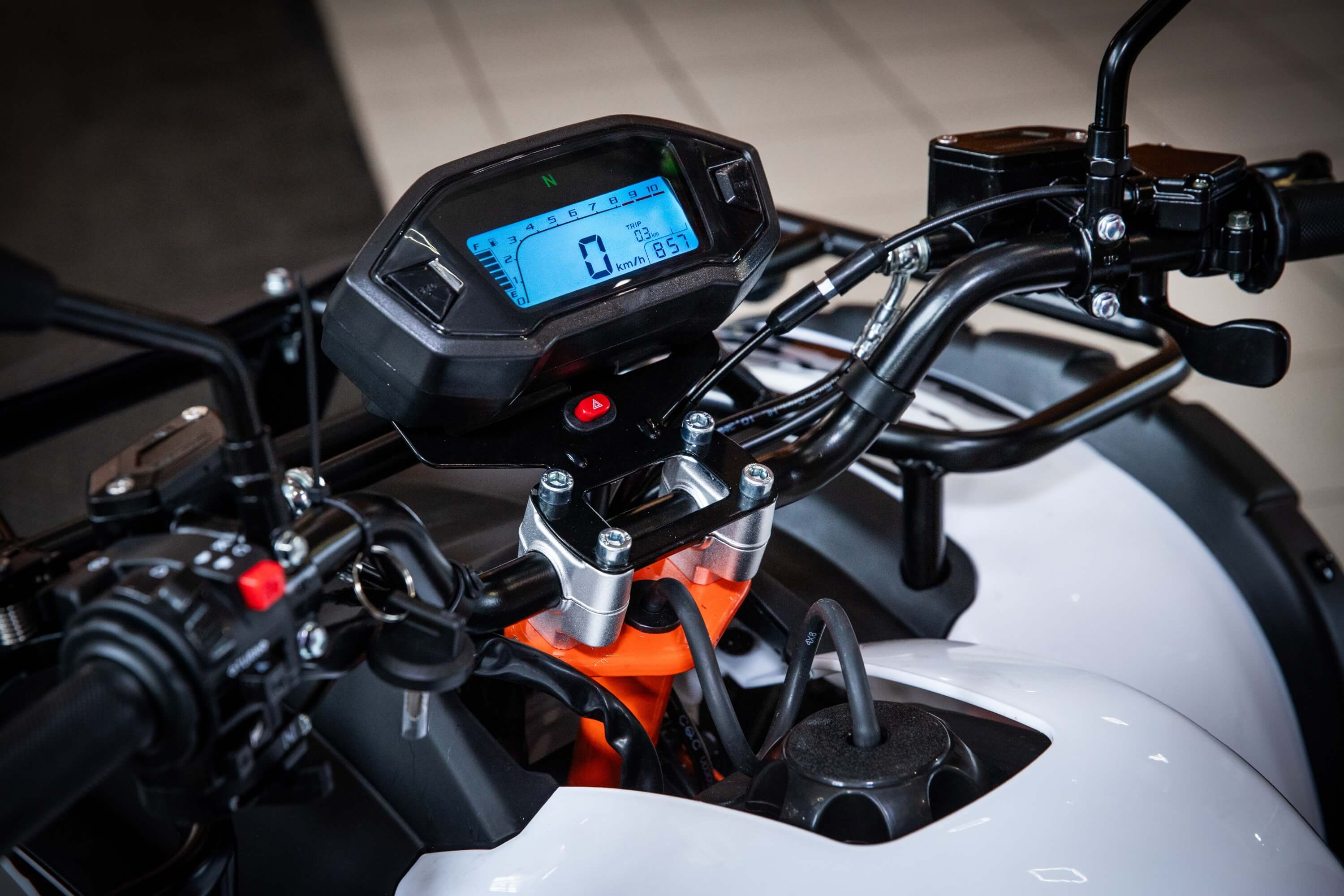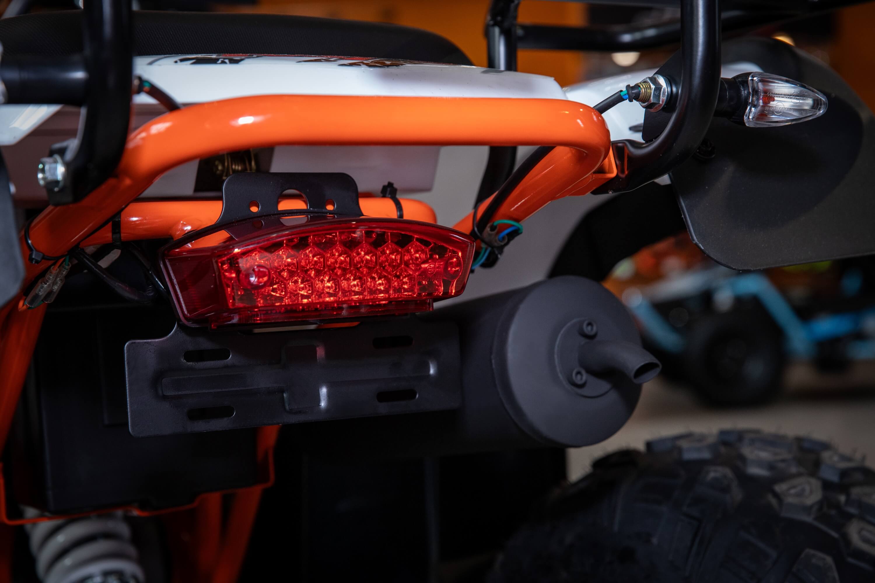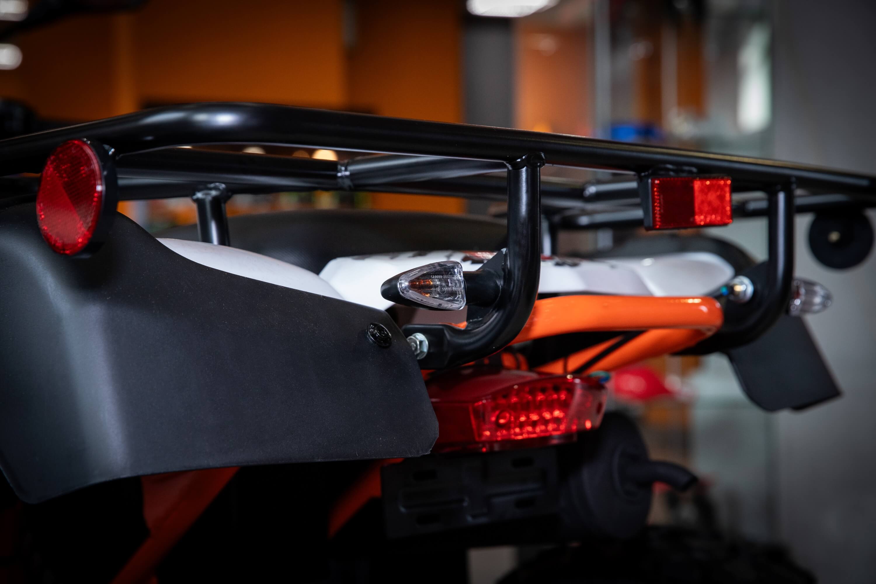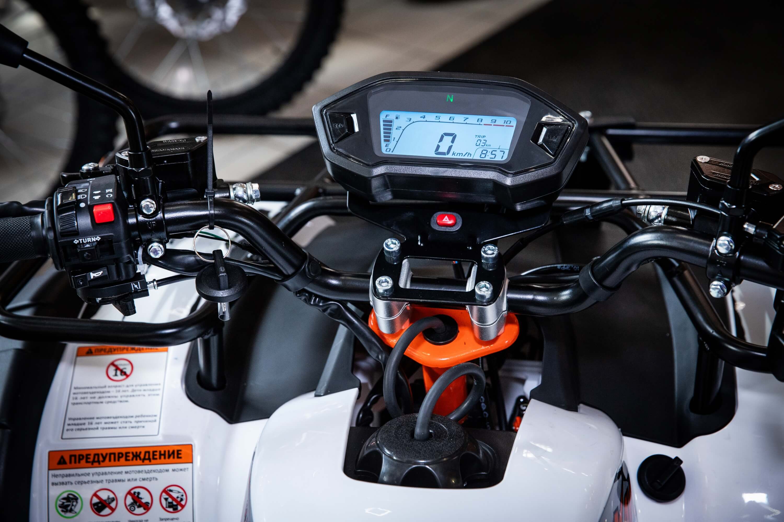 Комплект качественной оптики, широкие защитные крылья, крепкий багажник для перевозки небольших грузов, эргономичные сиденья и удобное рулевое управление повышают комфорт использования. Благодаря наличию ПТС квадрицикл можно поставить на учёт, чтобы ездить по дорогам общего пользования.
