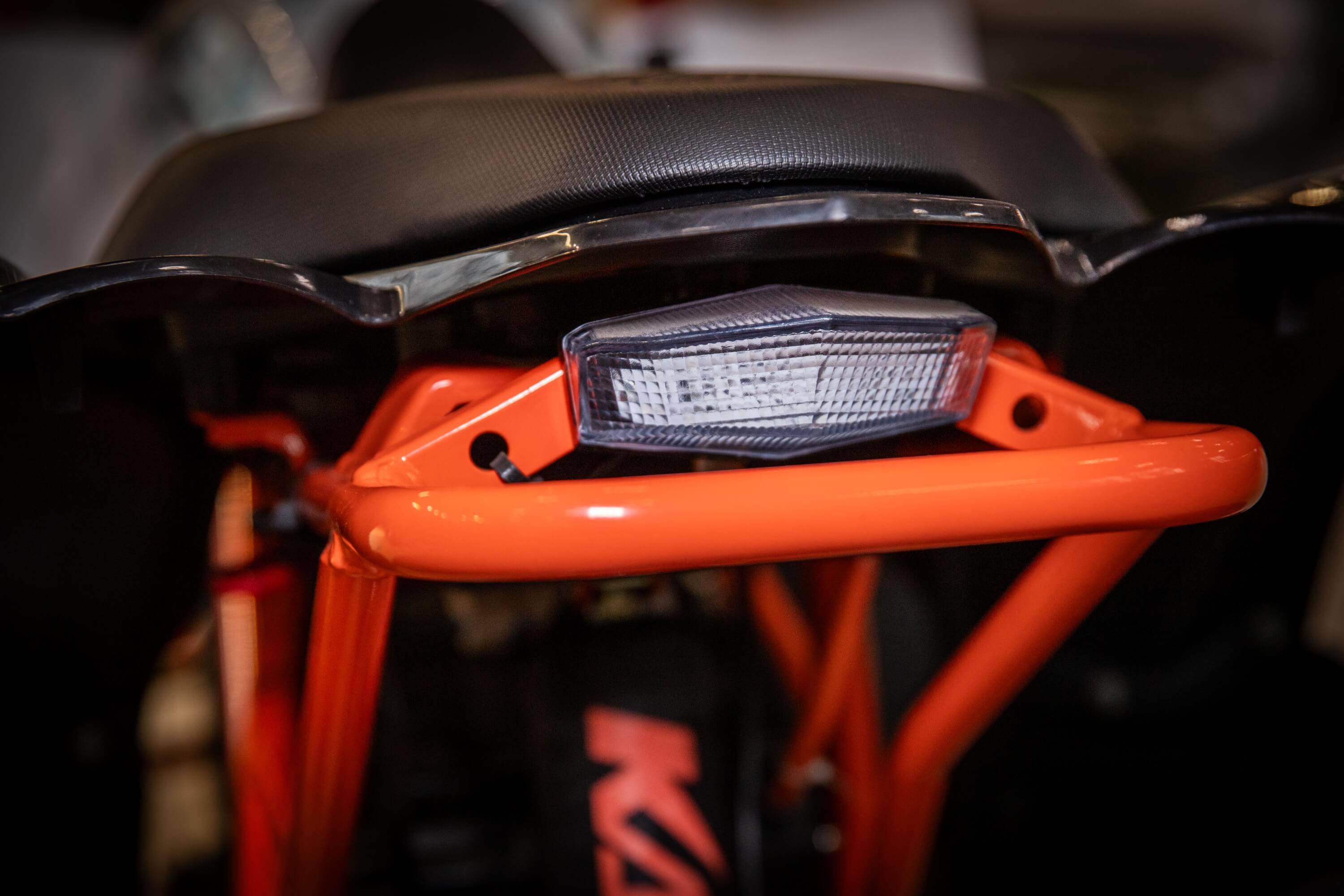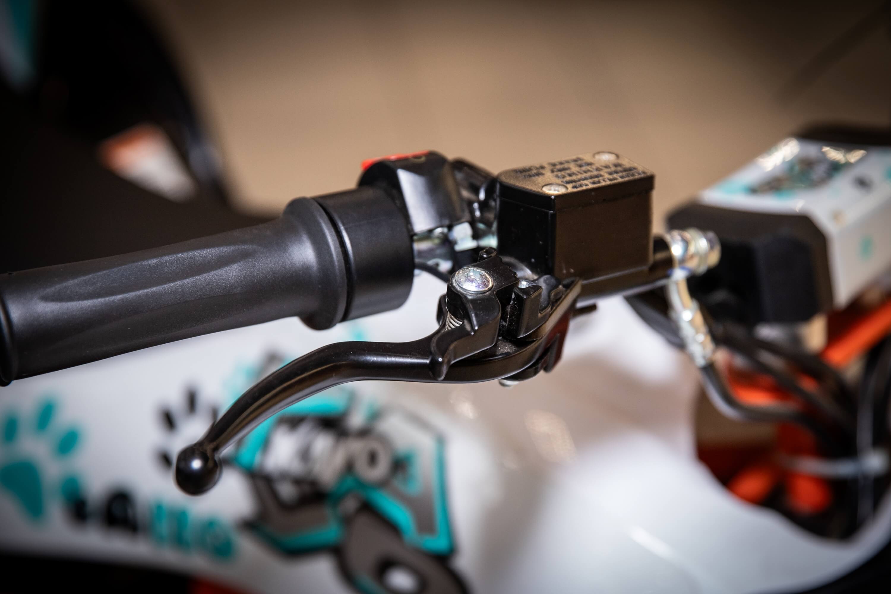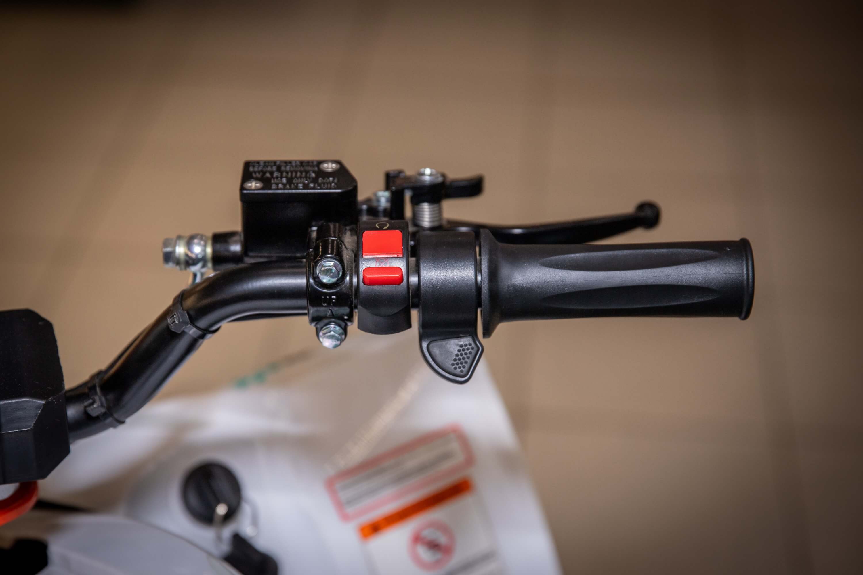 Диаметр колёс 8 дюймов. Подвеска спереди и сзади представлена амортизаторами длиной 265 мм. Задний амортизатор можно отрегулировать. На обеих осях установлены дисковые гидравлические тормоза.