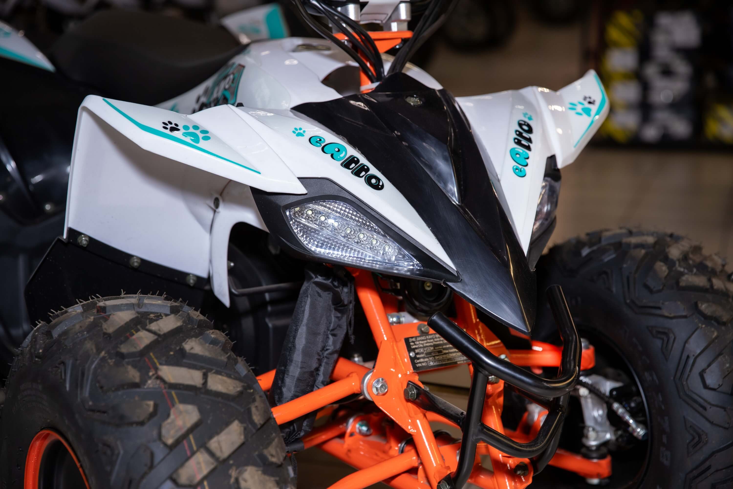 Оснащён бесщёточным электродвигателем мощностью 2100W. Обеспечивает плавную и бесшумную езду без выхлопных газов. Свинцово-кислотный аккумулятор 48V 20A обеспечивает запас хода 24 км. Полная зарядка аккумулятора занимает около 8 часов. Трансмиссия представлена 3-ступенчатой коробкой с реверсом. Грузоподъёмность квадроцикла 50 кг.
