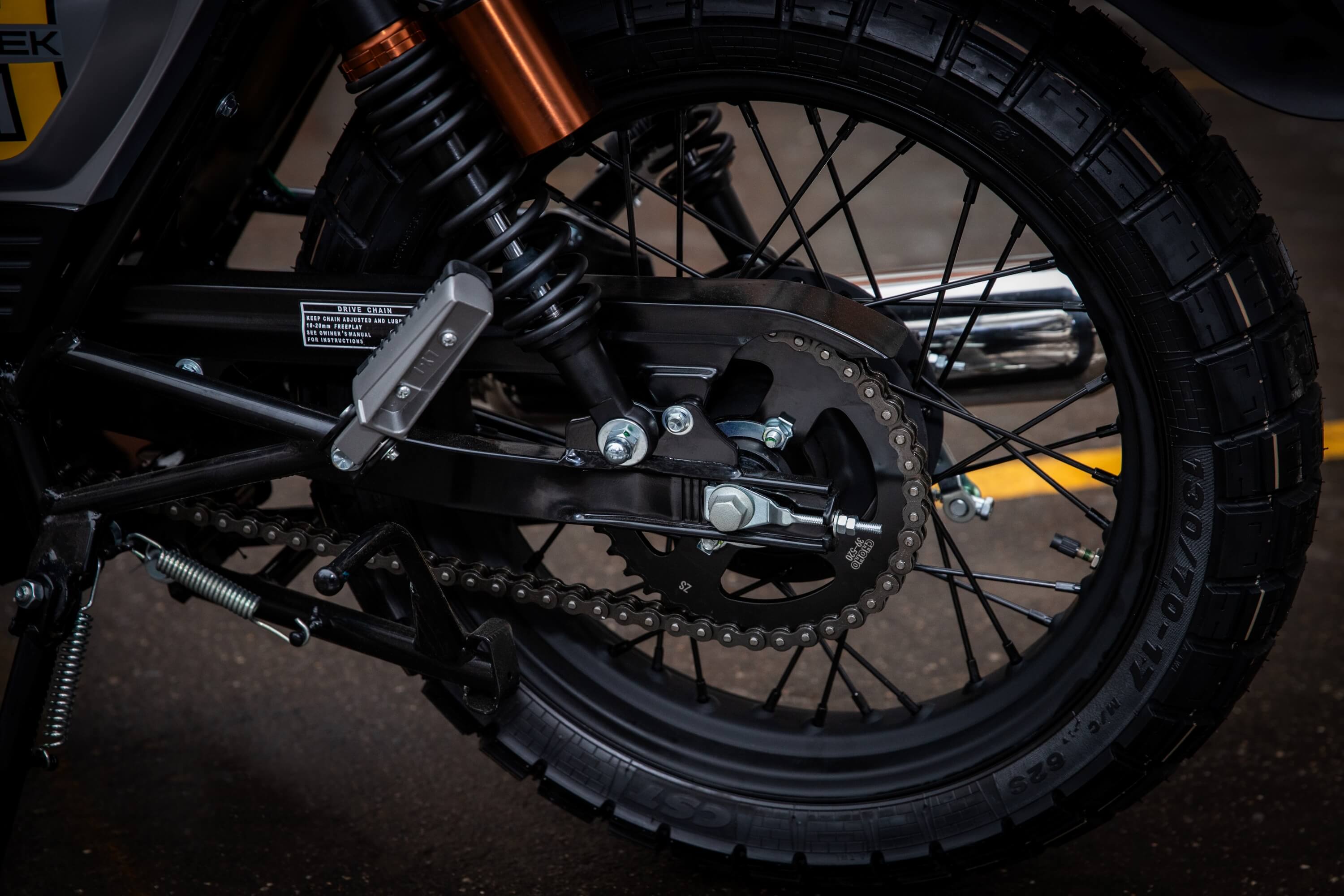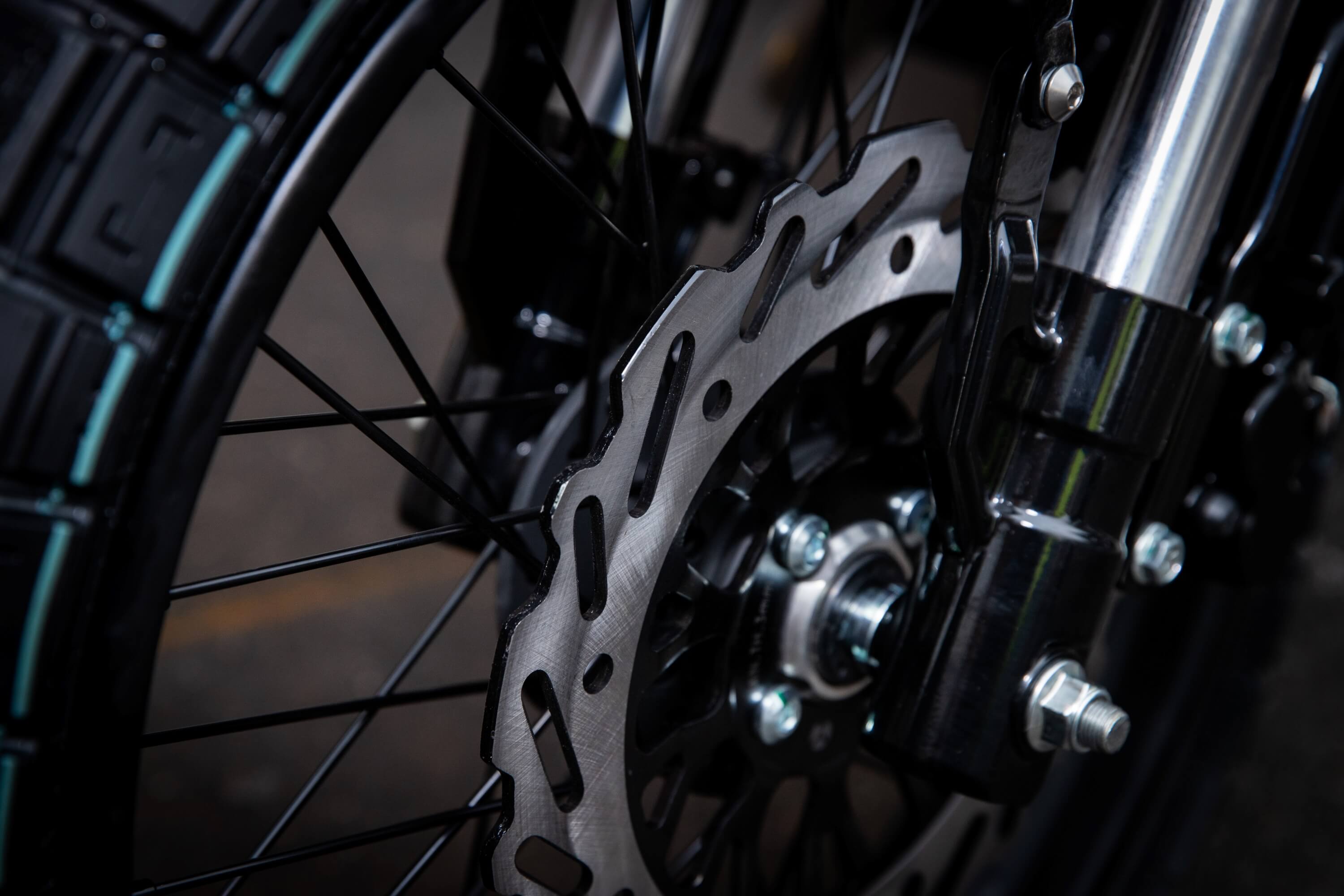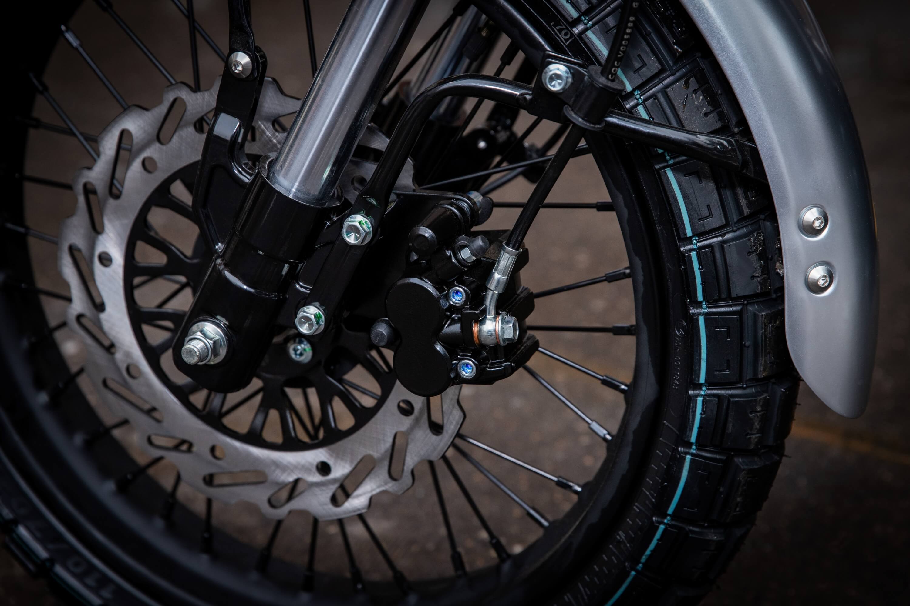 На мотоцикл установлены спицевые колёса диаметром 17 дюймов. Передняя подвеска представлена телескопической вилкой перевёрнутого типа с ходом 110 мм, а сзади используется 2 пружинно-гидравлических амортизатора с ходом 55 мм. В паре они позволяют эффективно амортизировать удары и поглощать избыточные вибрации при езде по бездорожью. За торможение отвечает дисковый гидравлический тормоз на переднем колесе и барабанный тормоз на заднем.
