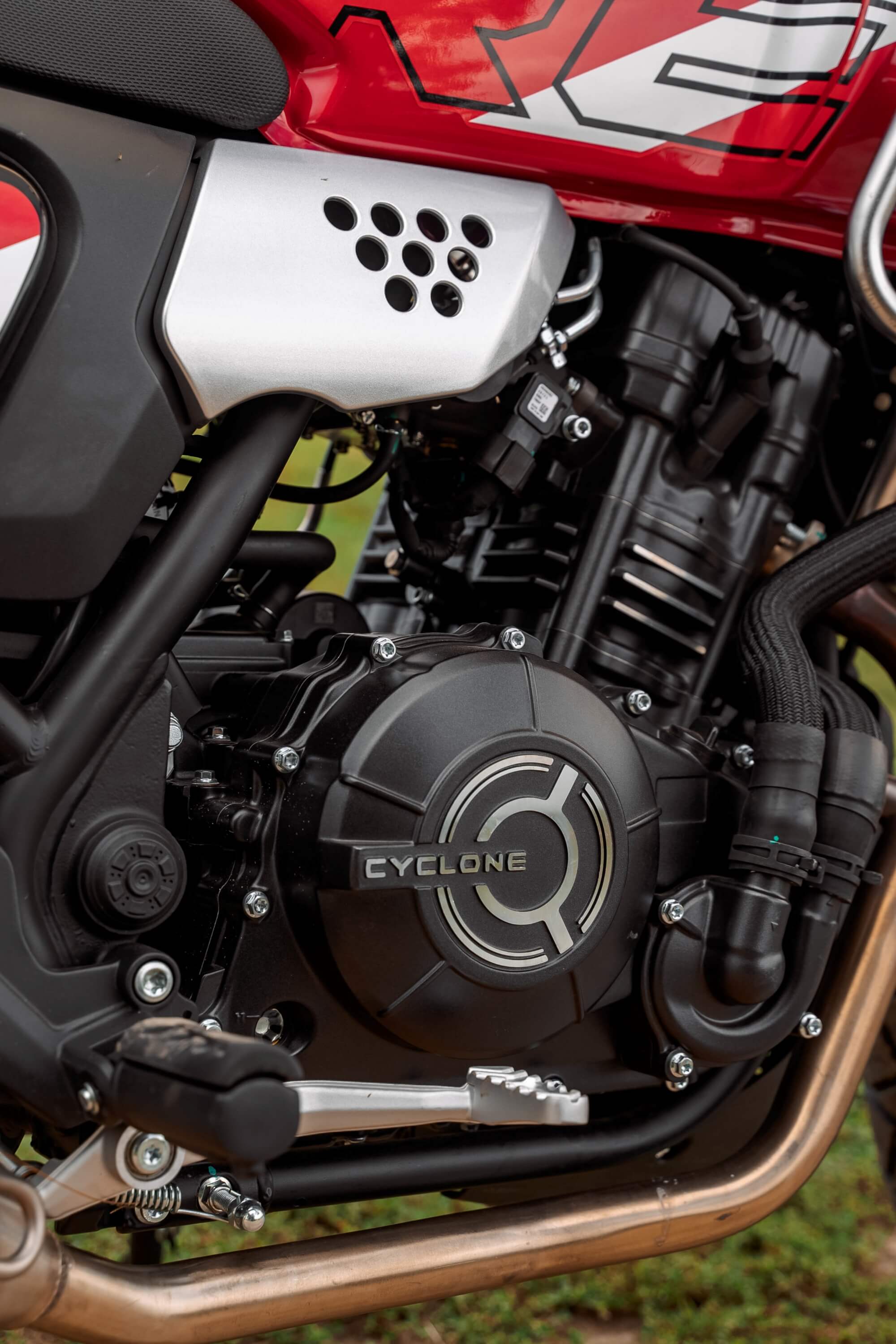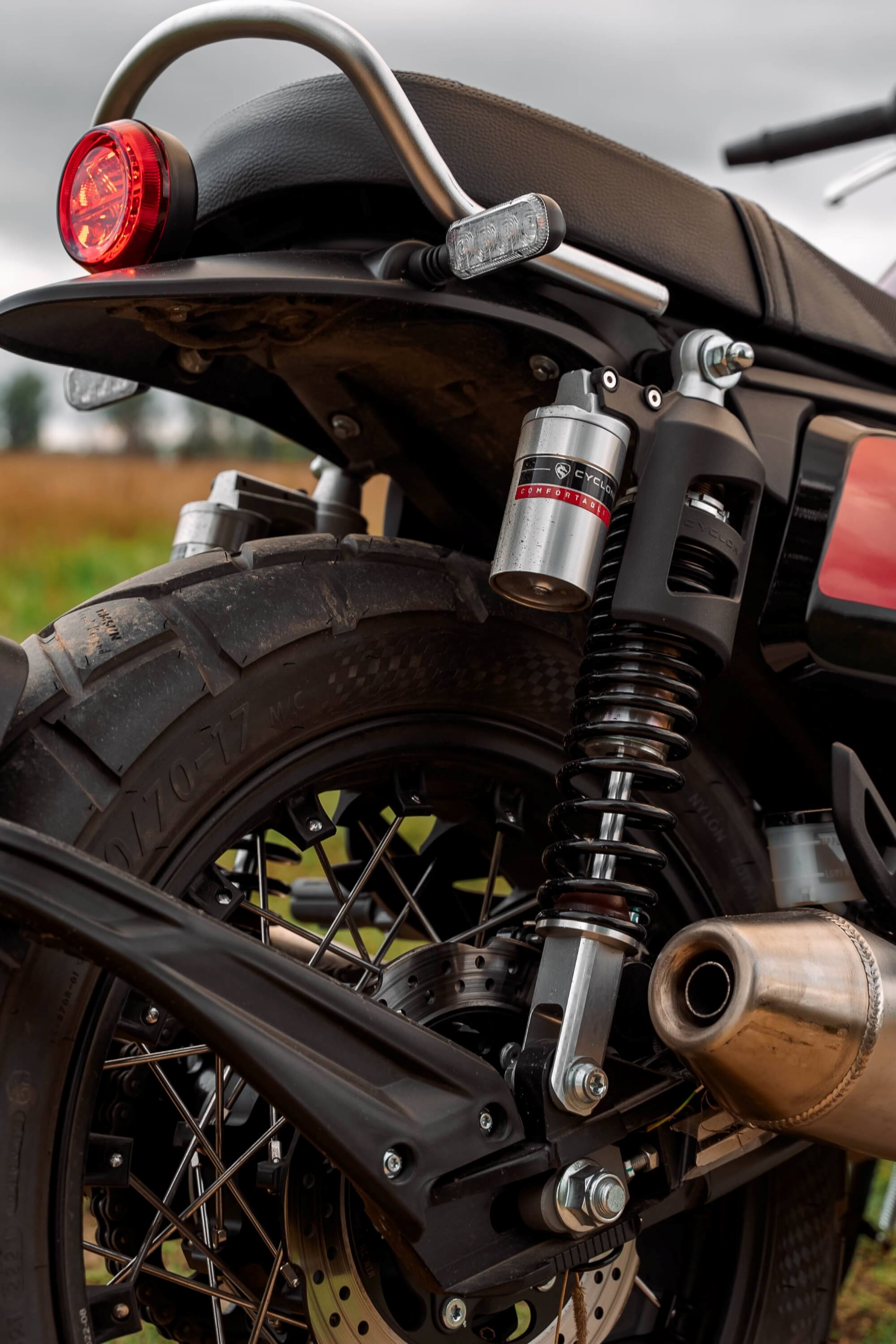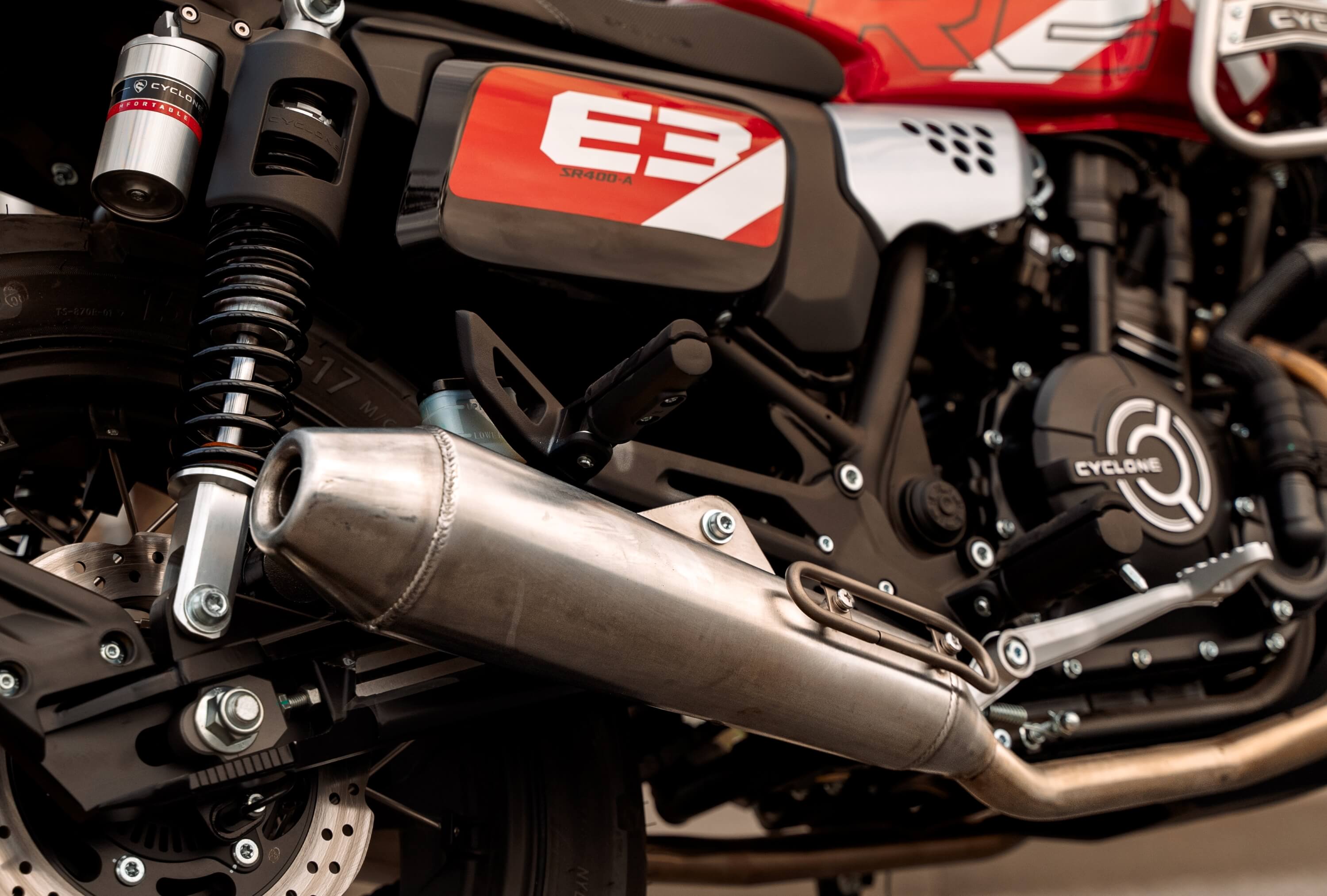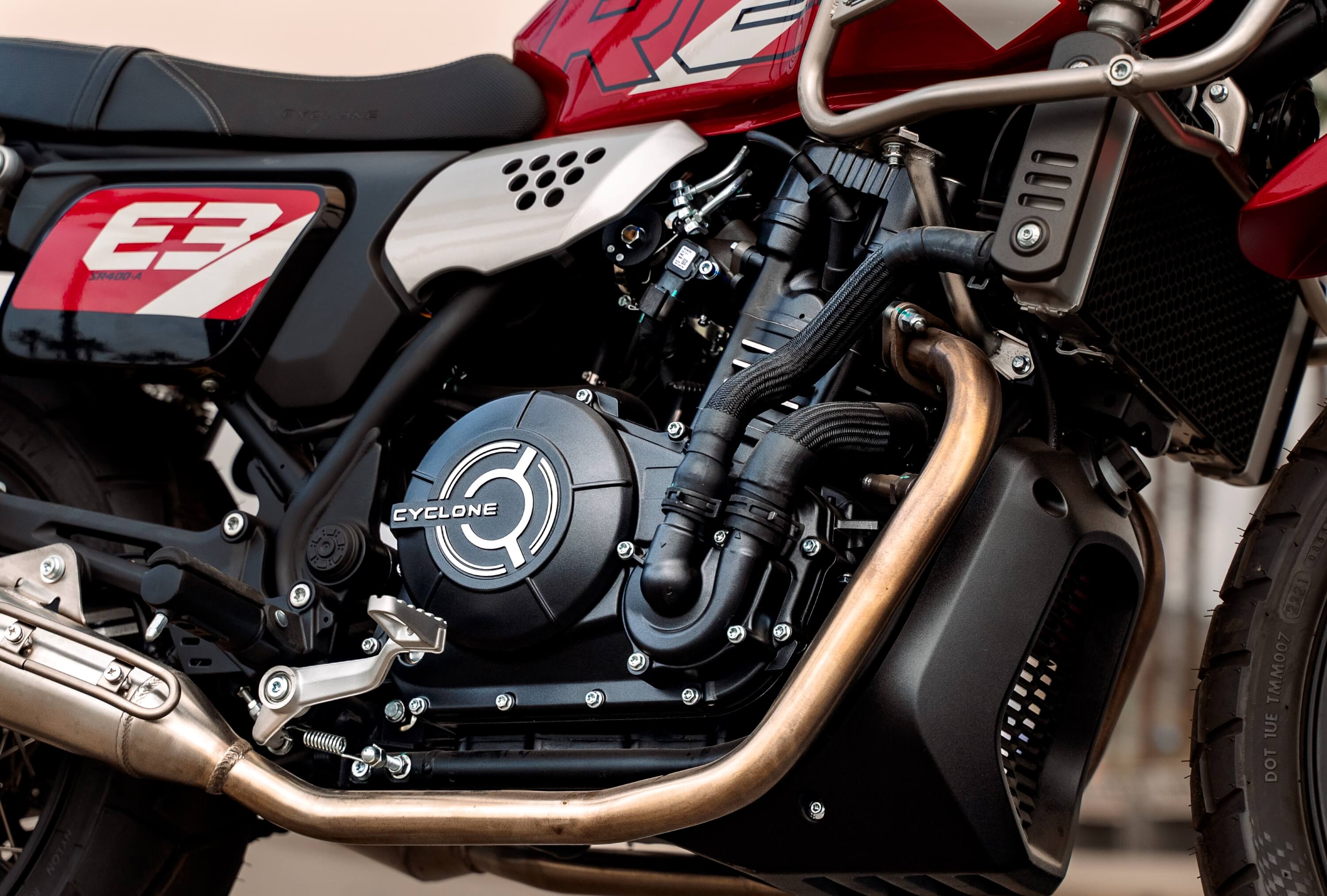 Мотоцикл CYCLONE RE3 Scrambler (SR400-A) – универсальный городской мотоцикл с внедорожными чертами, выполненный в каферейсерской стилистике. Управляя им, можно бросить вызов и городским пробкам, и скоростным автострадам, и всевозможному лёгкому бездорожью.