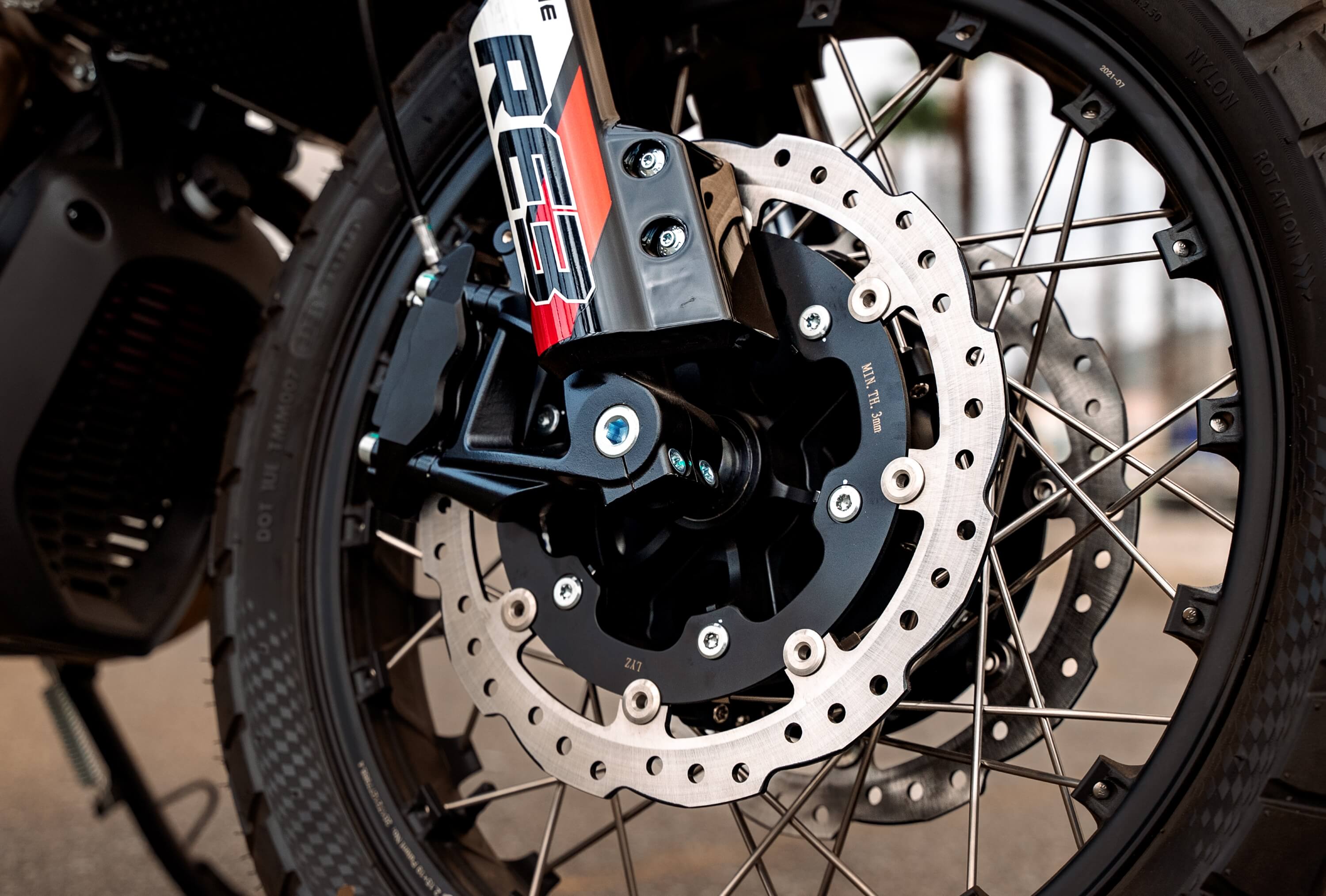 Для покорения любых маршрутов на мотоцикл установлены спицованные колёса, обутые в полувнедорожные покрышки. Диаметр колёс составляет 19 дюймов спереди и 17 дюймов сзади. Большой дорожный просвет в 220 мм позволяет легко проходить через препятствия. Все неровности отрабатывают телескопическая вилка перевёрнутого типа спереди и маятник с 2 амортизаторами сзади. Ход передней подвески составляет 130 мм, задней – 81 мм. Оба компонента подвески являются регулируемыми. Эффективное и безопасное замедление с любых скоростей обеспечивают гидравлические дисковые тормоза с ABS спереди и сзади.