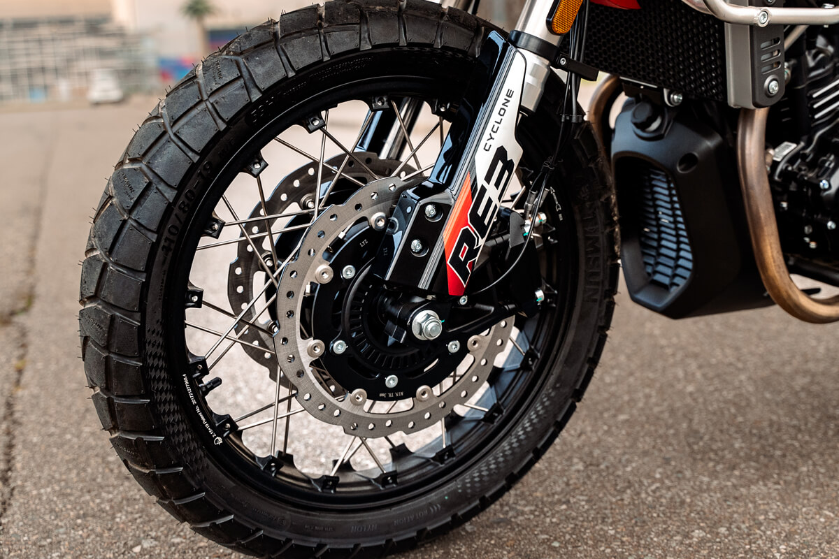 Для покорения любых маршрутов на мотоцикл установлены спицованные колёса, обутые в полувнедорожные покрышки. Диаметр колёс составляет 19 дюймов спереди и 17 дюймов сзади. Большой дорожный просвет в 220 мм позволяет легко проходить через препятствия. Все неровности отрабатывают телескопическая вилка перевёрнутого типа спереди и маятник с 2 амортизаторами сзади. Ход передней подвески составляет 130 мм, задней – 81 мм. Оба компонента подвески являются регулируемыми. Эффективное и безопасное замедление с любых скоростей обеспечивают гидравлические дисковые тормоза с ABS спереди и сзади.
