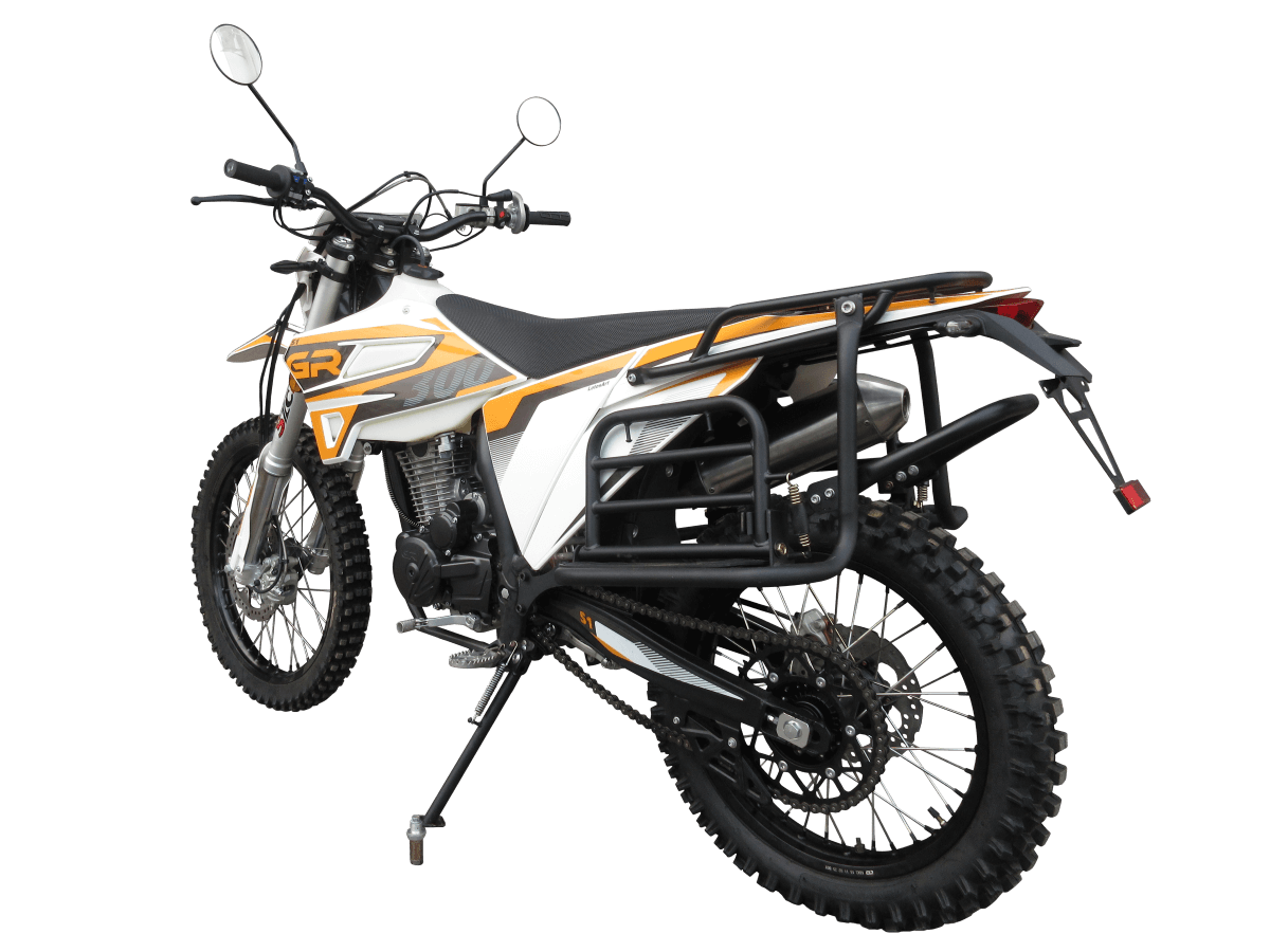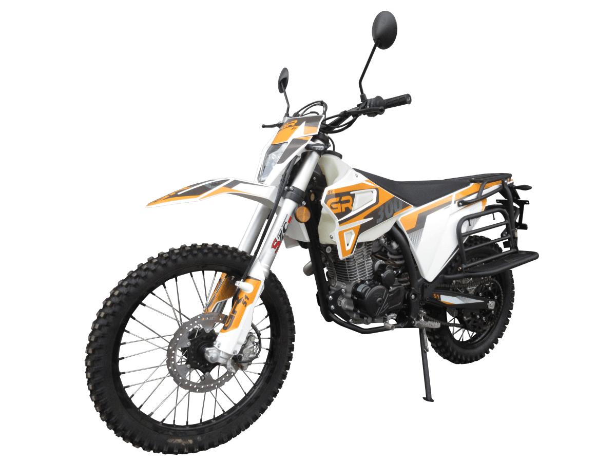 285,8 ТипЭндуро Мощность, л.с.25 ДвигательОдноцилиндровый, 4-тактный (LONCIN YB300H/ZS176FMN) ОхлаждениеВоздушное Система подачи топливаКарбюратор OST PWK 34 Емкость бака, л.13 Передняя подвескаТелескопическая, перевернутого типа, 840 мм регулируемая (отбой) Задняя подвескаМоноамортизатор 440 мм, нерегулируемый Передний тормозДисковый гидравлический Задний тормозДисковый гидравлический Колеса21/18 Длина*Ширина*Высота, мм2120*820*1190 База, мм1 410 Высота по седлу, мм880 Вес, кг117 -